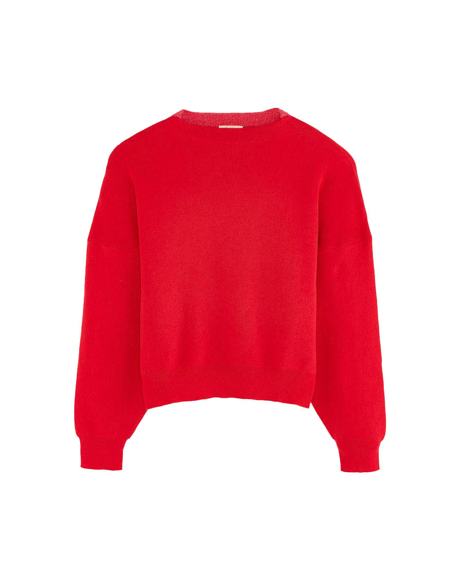 Regular sweater with long saddle sleeves and a crewneck, made from a soft cotton yarn in crimson red.