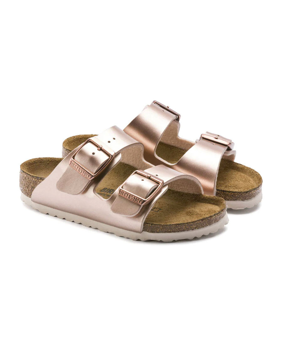 The legendary two-strap design from BIRKENSTOCK - the Arizona. Iconic style complemented with signature comfort of the BIRKENSTOCK footbed. Shown in "Electric Metallic" Birko-Flor®.