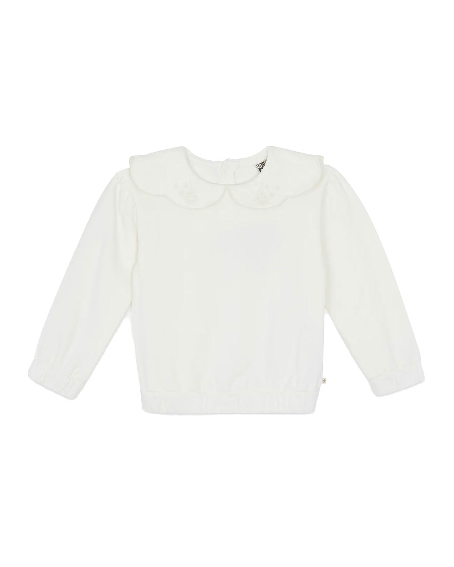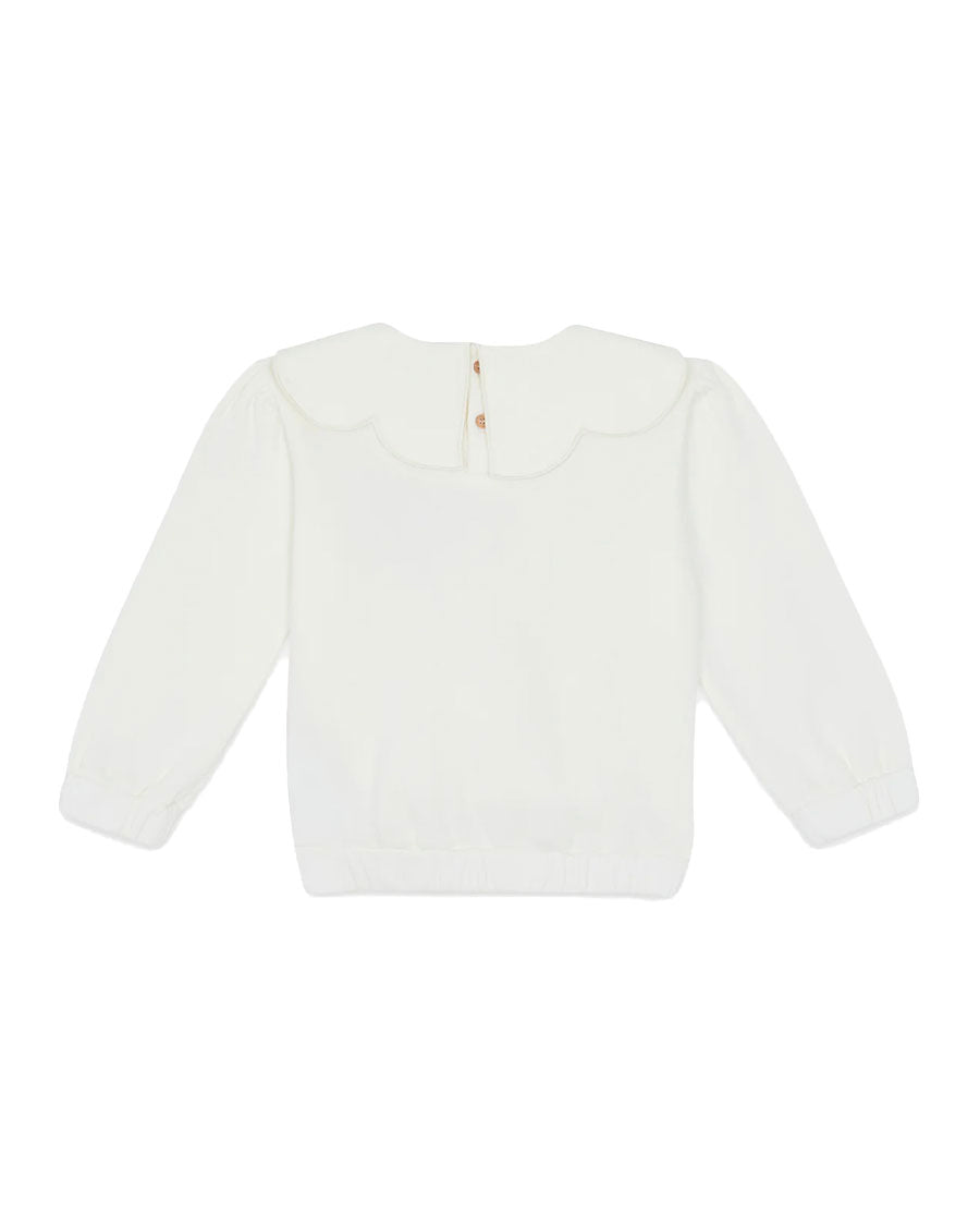 Let yourself be seduced by the Sweatshirt Martine from the "Faroe Island" collection, an essential for little adventurers! With sound Peter pan collar wide and its Puffy sleeves, He invites you to exploration very gently. Tinged with an ecru bonton, this Sweatshirt In 100% cotton evokes the soothing landscapes of the Faroe Islands and goes perfectly with jeans or a Skirt For a look full of style.