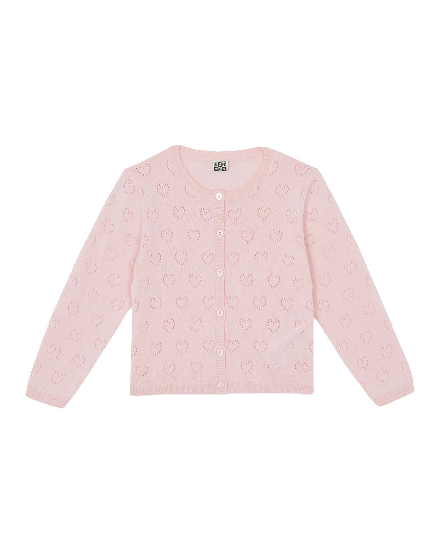 THE Cardigan Lilou heart in Pink Blossom from the "Winter Tales" collection is an invitation to winter magic! Its Knitwearopenwork of hearts and its sweetness of cotton and Wool Merinos envelop your Girl in a heat cocoon. With its closure at Button, It is perfect for winter adventures or a snack by the fire. To associate with a Skirt in Velvet Or jeans for an enchanting look!