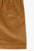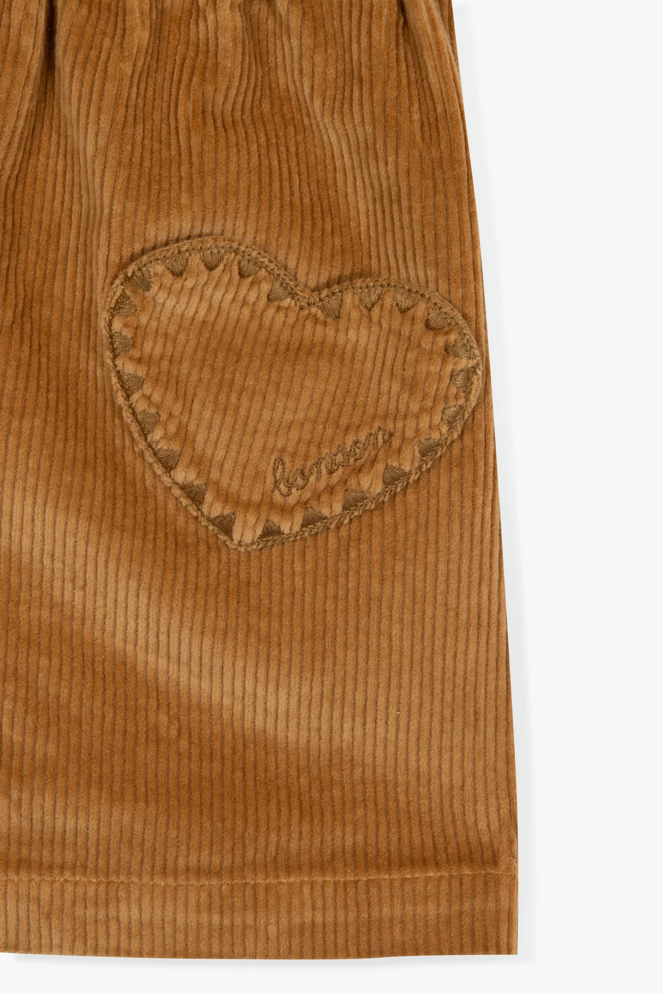 THE Short Mélanie from the "New Barn" collection is a nod to the western style with her brown barn shade and her Velvet Bubble. With its elastic waist and heart -shaped panels, it is as cute as comfortable! Perfect for small adventurers, it is accompanied by ornamental embroidery around the pockets for a touch of additional charm. Combine it with a t-shirt or Blouse For an adorable western look.