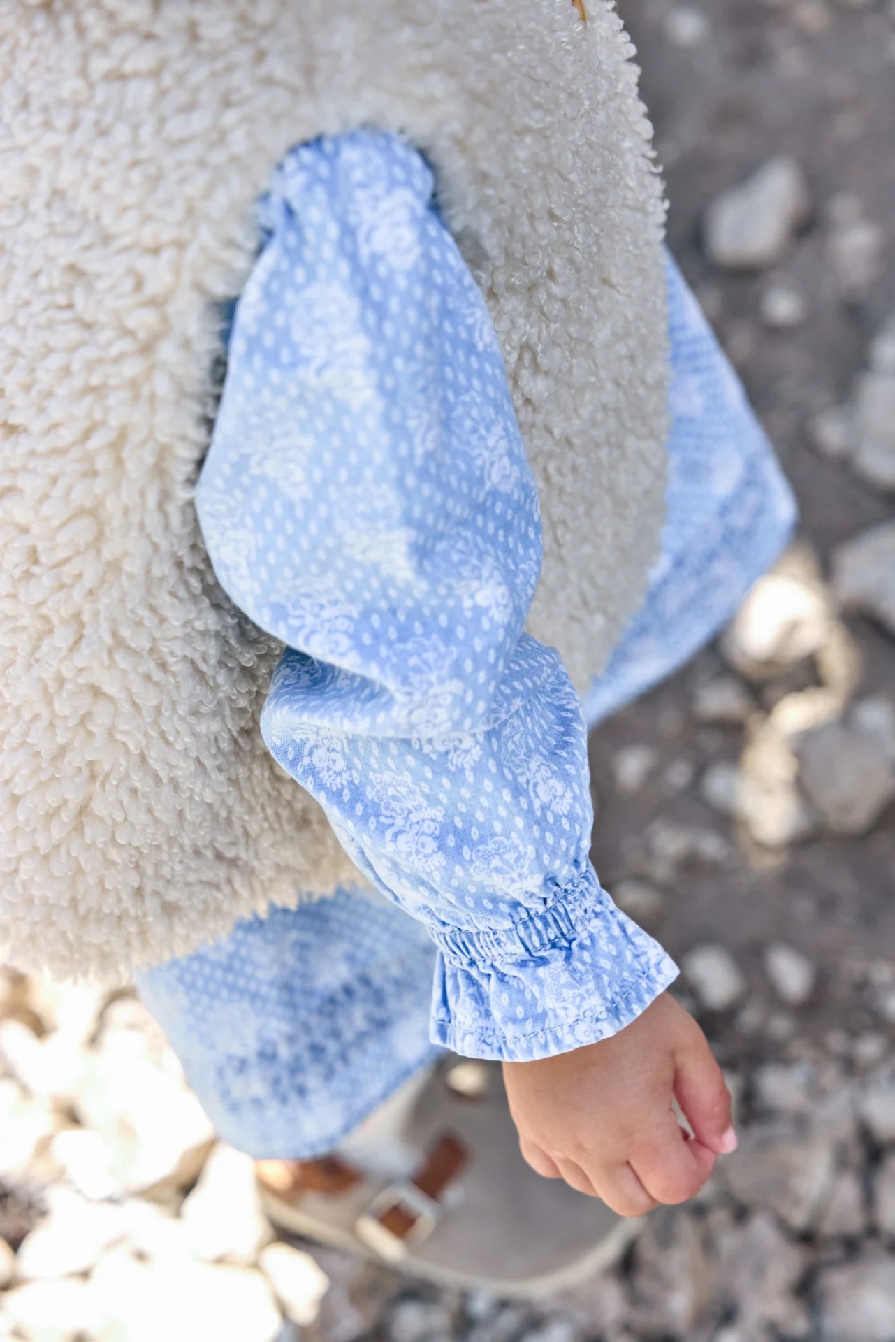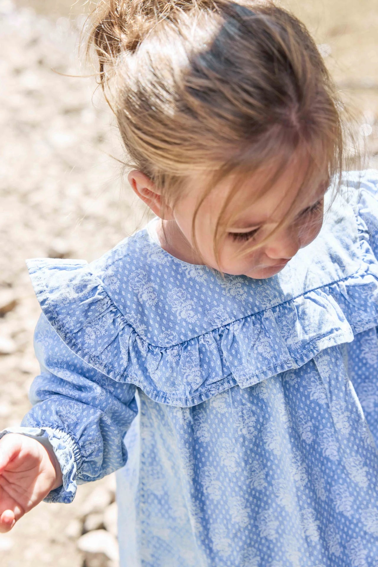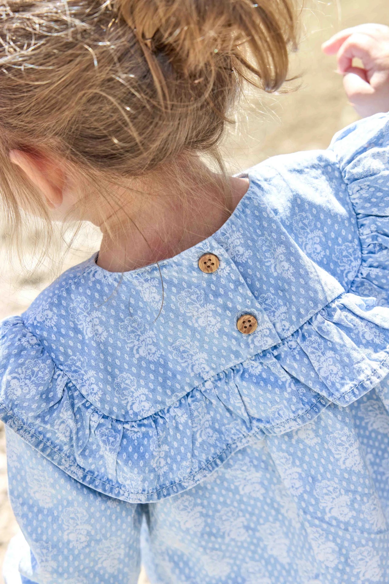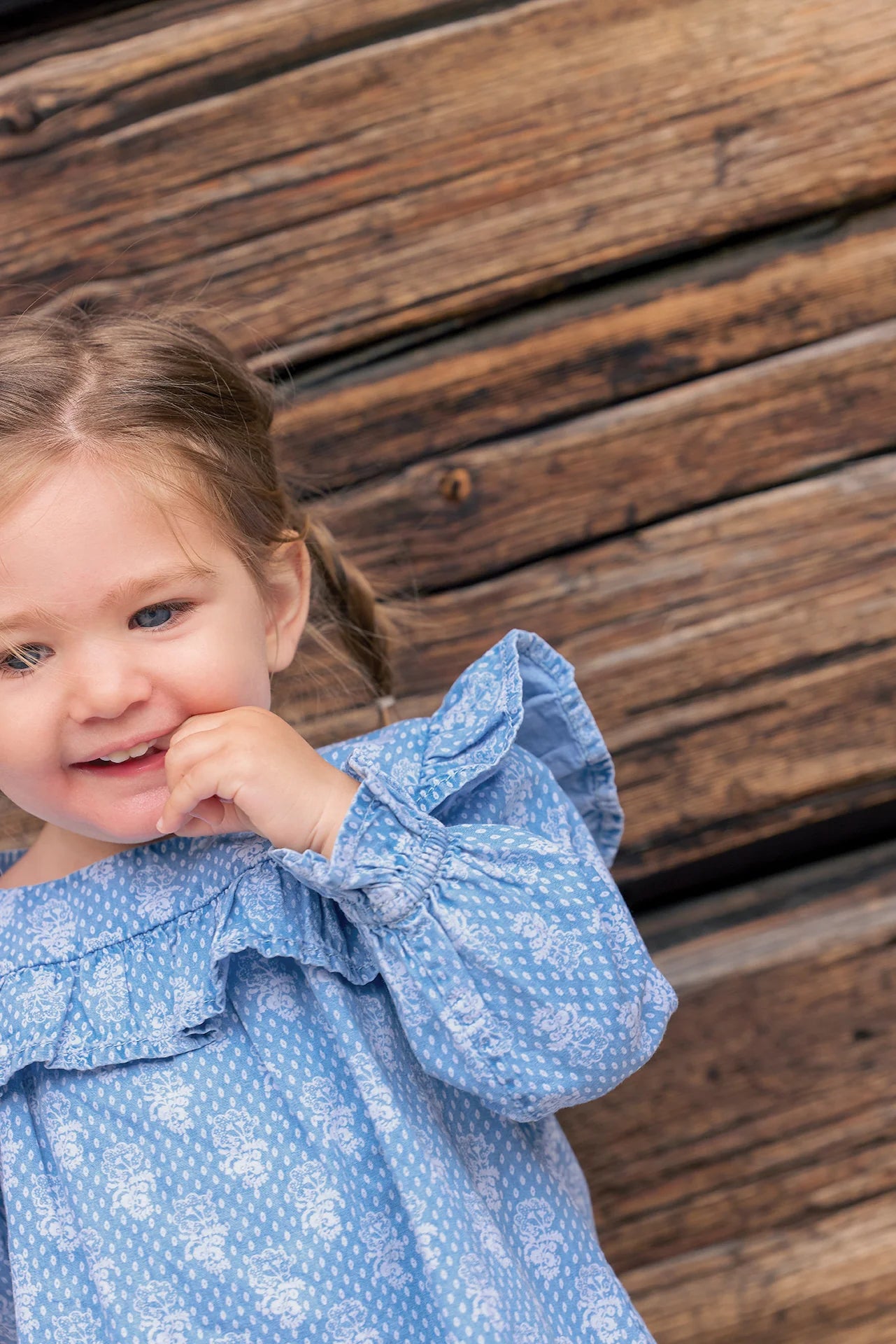 There Dress Maggie in Mini Bandana Blue From the New Barn collection is an invitation to dance under the stars of the Great West! With its Ruffles playful and its Puffy sleeves, It offers a chic and relaxed look. THE Pleats horizontal and Button On the back add a touch of retro charm. Ideal for a little budding cowgirl, ready to explore the vast meadows!