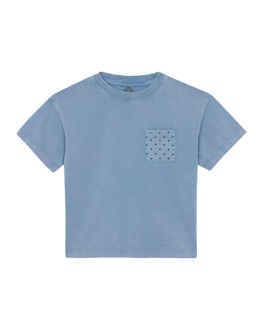 The Nixon t-shirt Blue Baby is a rising star of the summer! With his pocket Printe stars, it invites you to discover the starry sky on warm summer evenings. Made from 100% cotton, it offers absolute softness and comfort for little adventurers. Perfect to pair with a Short light or Trousers in linen to explore the world with style and carefreeness.