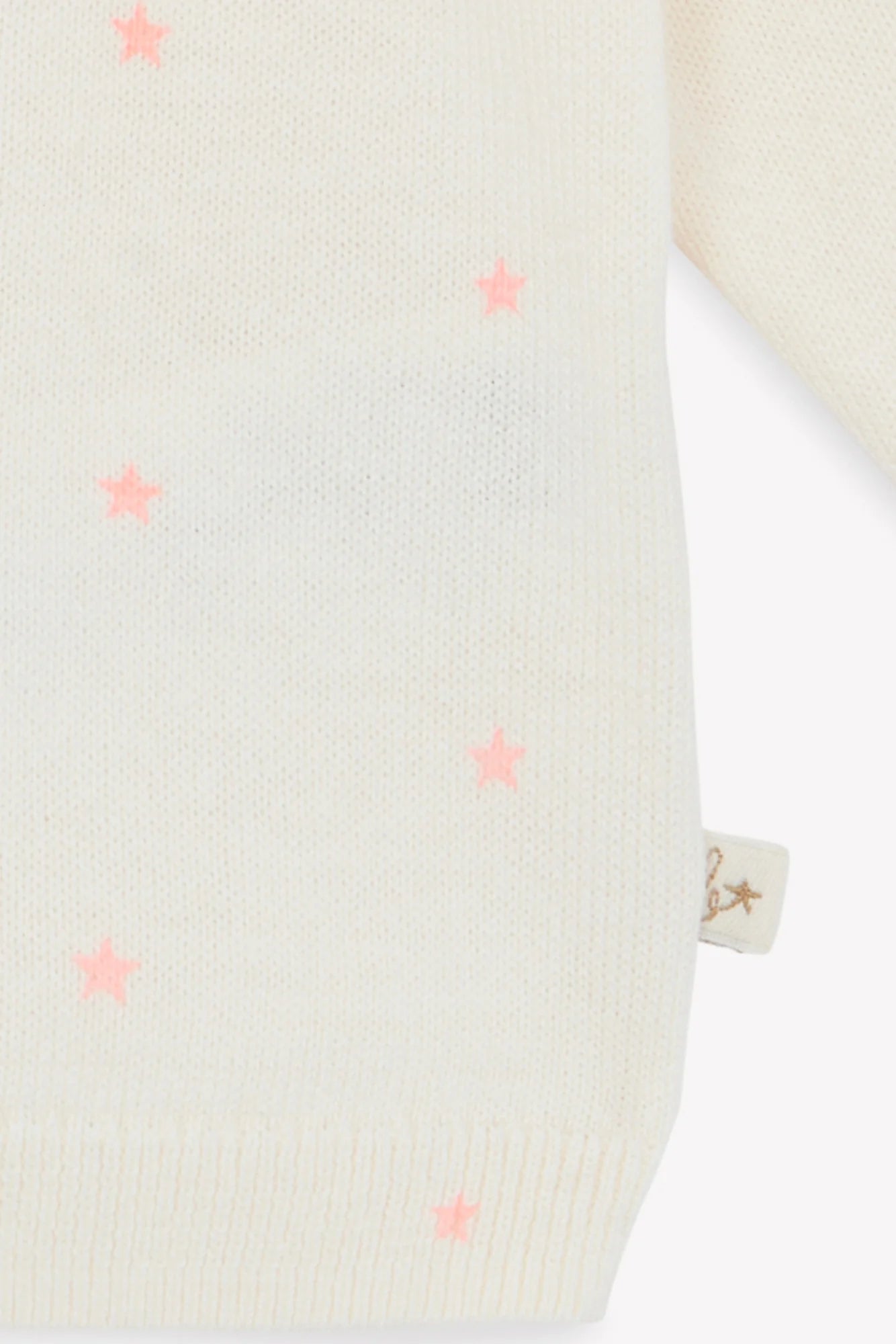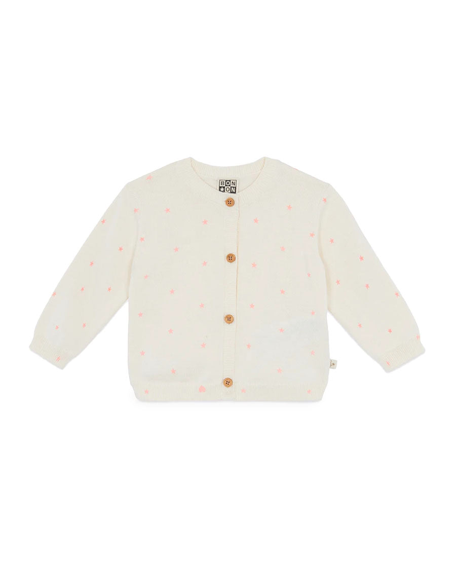 The Cardigan Lilet Star ecru Bonton is a star of softness for Baby ! This Cardigan, with its star jacquard and its iconic look, wraps little ones in warmth and comfort. Made from 100% cotton, it is perfect for cuddling. To button easily on a Dress or a light outfit, it adds a touch of radiance to the sweet days of Baby.