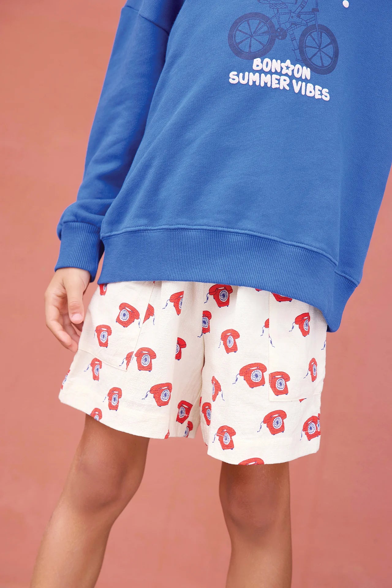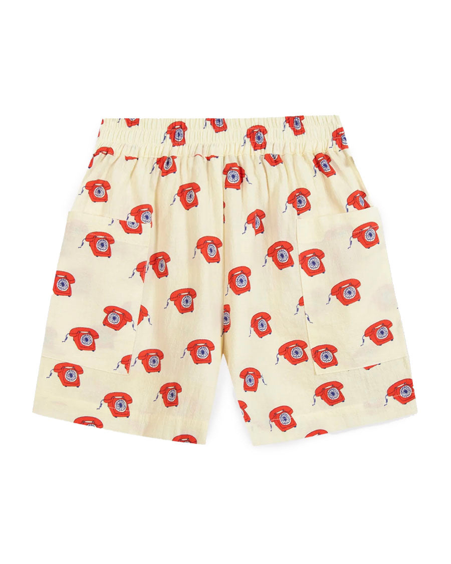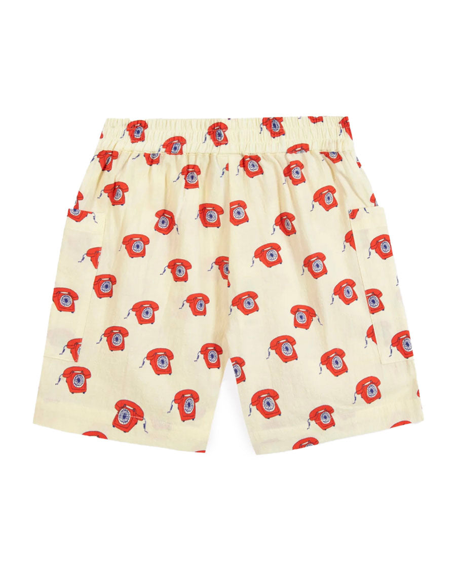This Short elastic waistband with its telephone motif is an invitation to have fun all summer long! Its two large patch pockets are ideal for storing your little treasures. Made from cotton, it is soft and comfortable, perfect for sunny days. Inspired by the "Summer 81" collection, this Short retro and playful will bring a touch of fun and style to the wardrobeDress juniors.