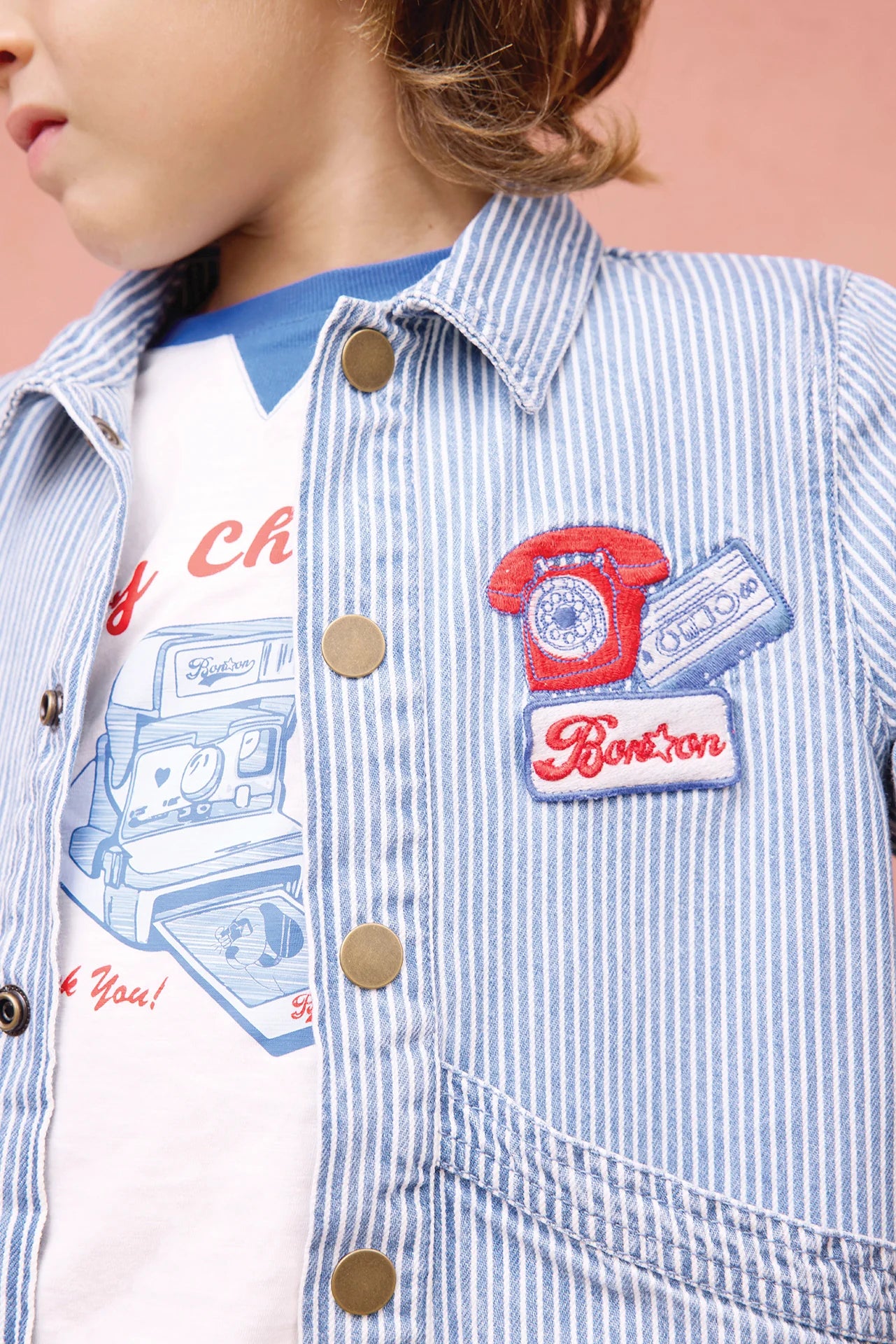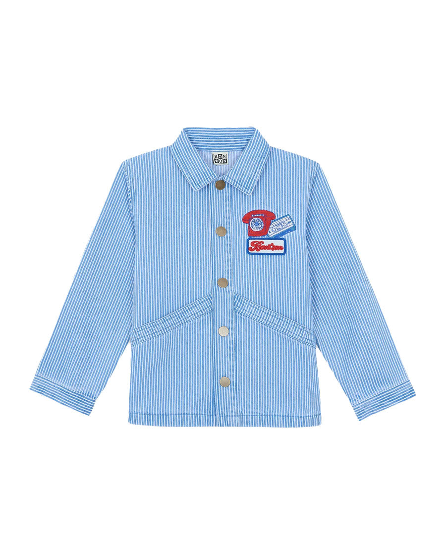 Relive the spirit of the 80s with the Nineties denim jacket! This classic revisited with its patch pockets, Button pressure and phone badge Embroideredis a must for young adventurers. Made from 100% cotton, it combines comfort and retro style. Perfect for a casual look, it pairs ideally with jeans or a Skirt for a vintage touch. Let your child travel back in time while remaining fashionable this summer!
