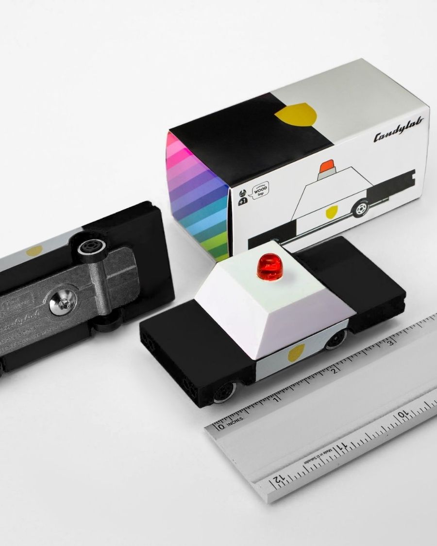 Part of the new Candycar line, a cute 3 inches long. A tiny sheriff to keep an eye on your tiny town.