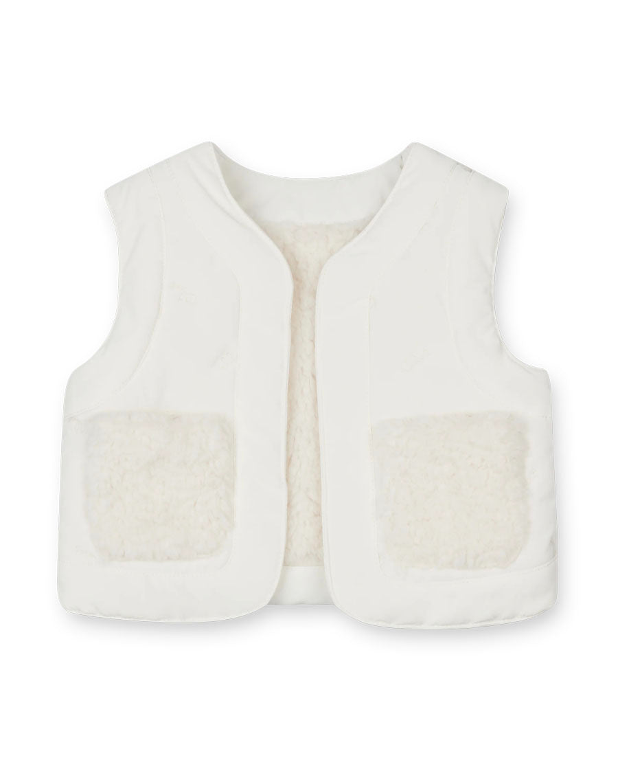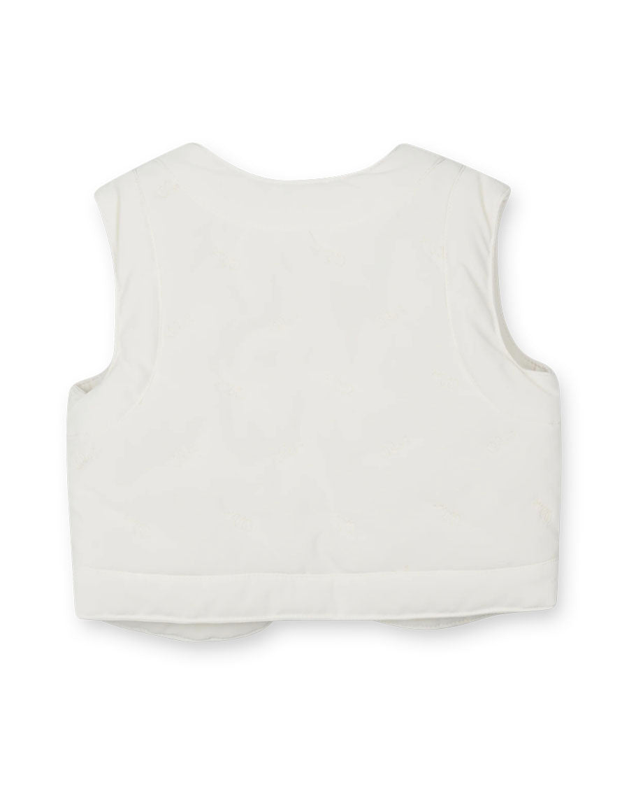 Soft, versatile, and timelessly elegant, the Chloé Baby Reversible Quilted Vest in off white offers two charming looks in one. One side features smooth, peach-skin–finish polyester with delicate all-over embroidered Chloé logos, while the reverse is crafted from cozy fleece with two plush patch pockets. Designed in a straight fit for easy layering, this vest combines warmth and style for any season.