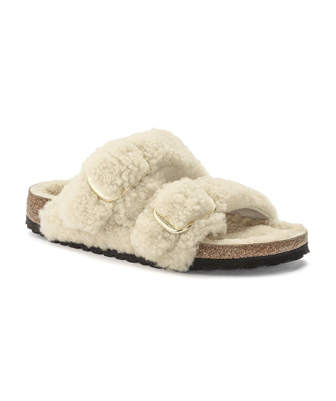 Oh-so-fluffy and a kid favorite. Plush teddy shearling transforms the Arizona's iconic, two-strap design into their favorite slip-on of the season. Teddy shearling even pads the footbed lining for the ultimate cozy finish. Complete with classic BIRKENSTOCK design elements, like a contoured cork-latex footbed to keep them comfortably on the move.