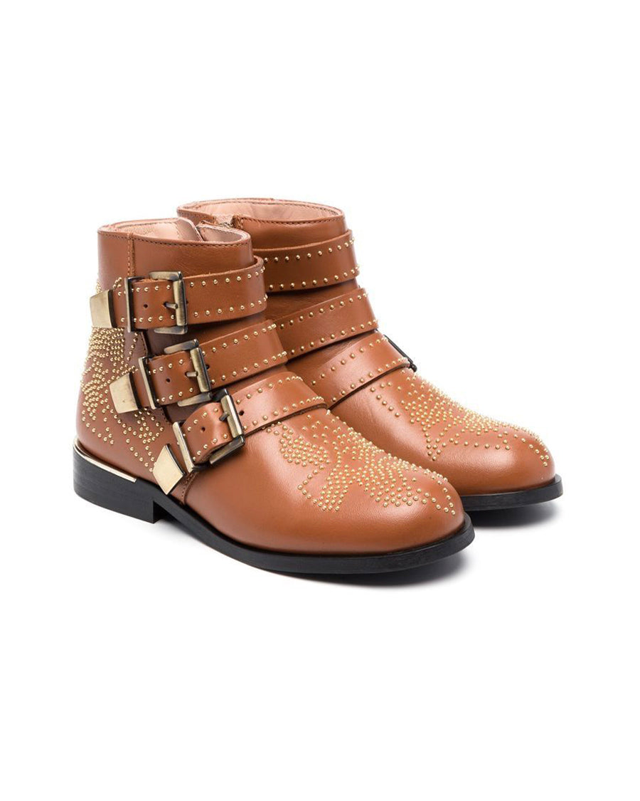 Chloé Kids continues the Western-inspired narrative of the mainline brand with these ankle boots. Gold-tone studs adorn their calf leather construction, lending an equestrian feel to the pair.