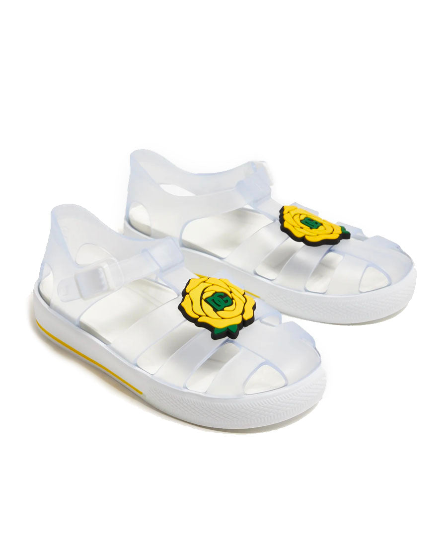 Part of the Dolce&Gabbana Flowering Collection, these PVC sandals are perfect for your little one's beach day. Made from transparent PVC, these sandals feature a flower and DG logo, an ankle strap with buckle and a rubber footbed.
