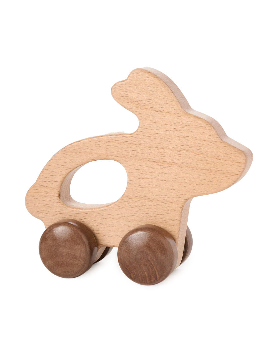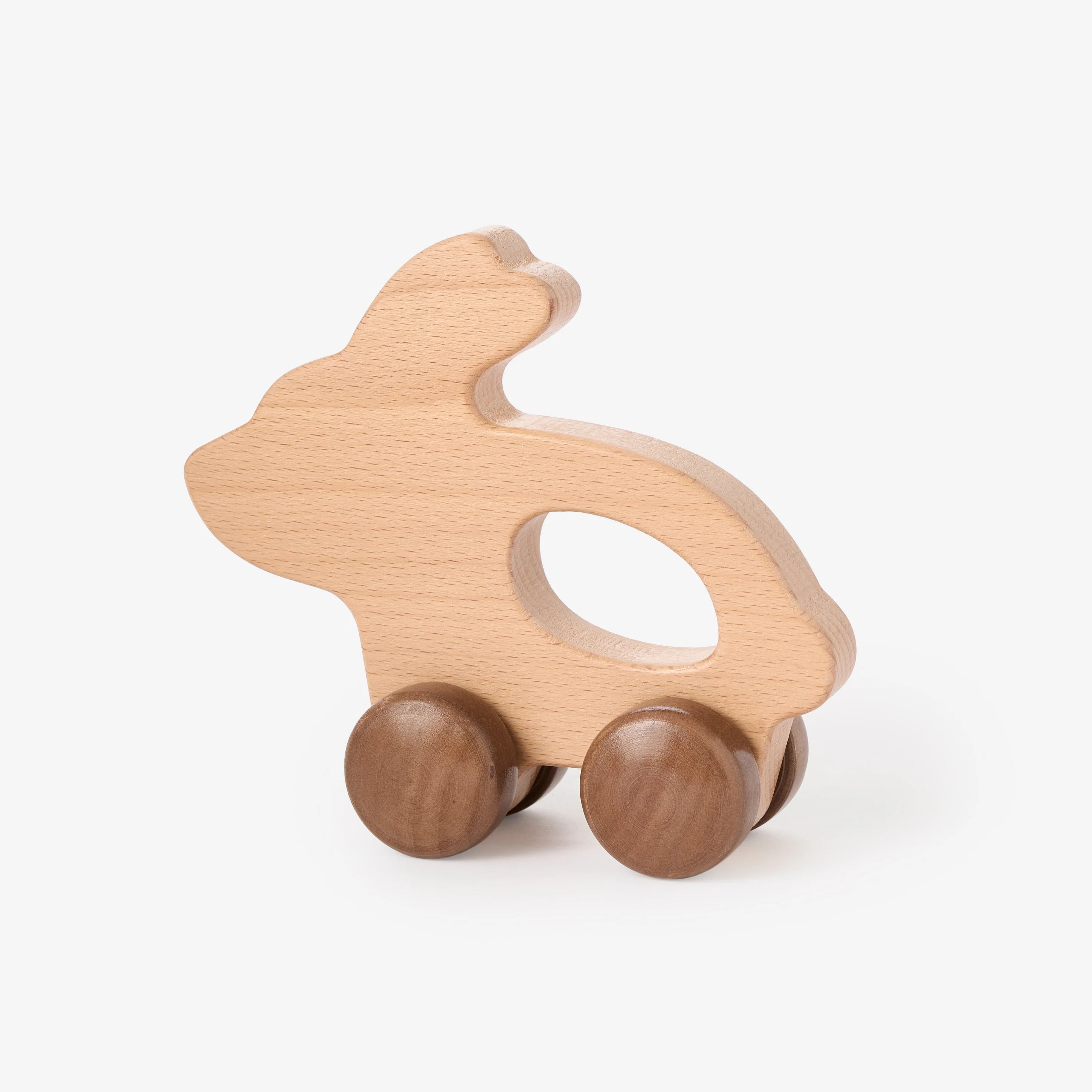 This adorable bunny features soft colors and easy-rolling wheels, perfect for little hands to push and pull. A delightful blend of fun and function, it encourages motor skill development and imaginative play, making it a perfect gift for any nursery or playroom. A beautiful keepsake for years to come.