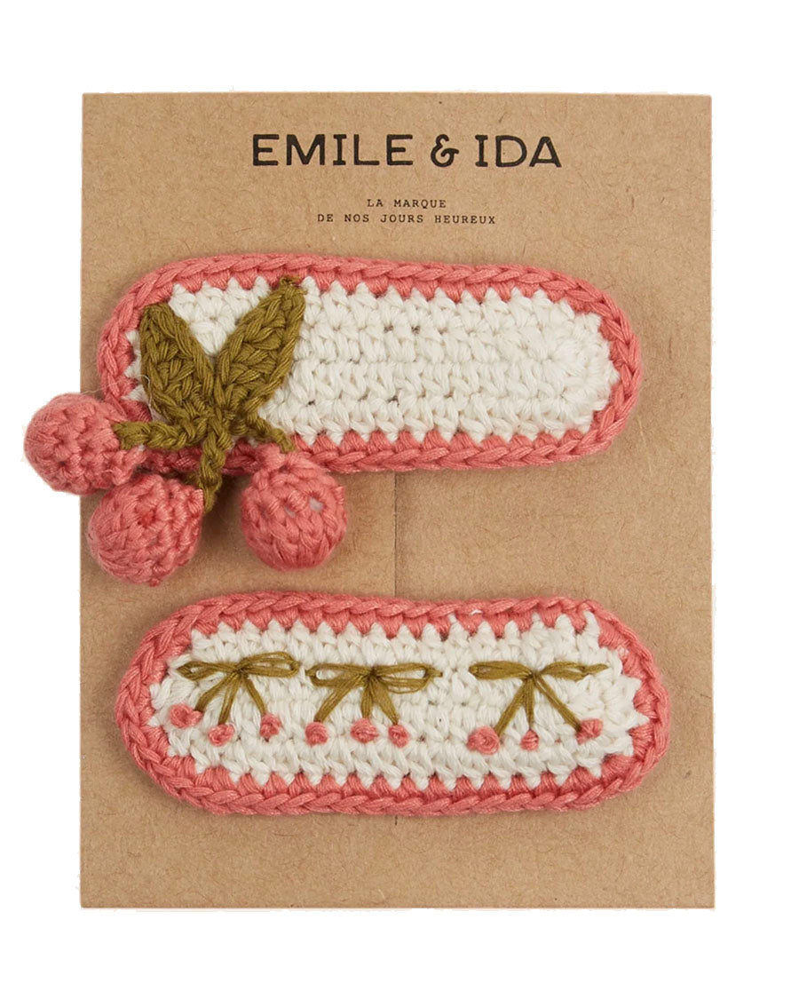 Crochet Cherry Barrettes (2-Pack) - Pink