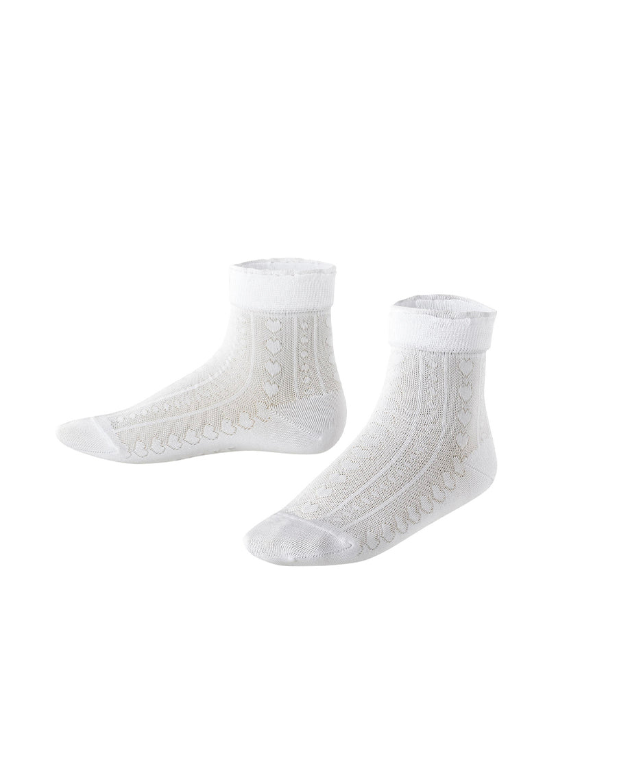 These romantic children’s socks are made from high-quality Fil d'Ecosse cotton. Thanks to the fine ajour heart print pattern and romantic ruffles on the cuffs, these socks are great for festive occasions. The perfect Falke fit ensures optimum wearing comfort. In addition, reinforced impact zones ensure optimum durability.