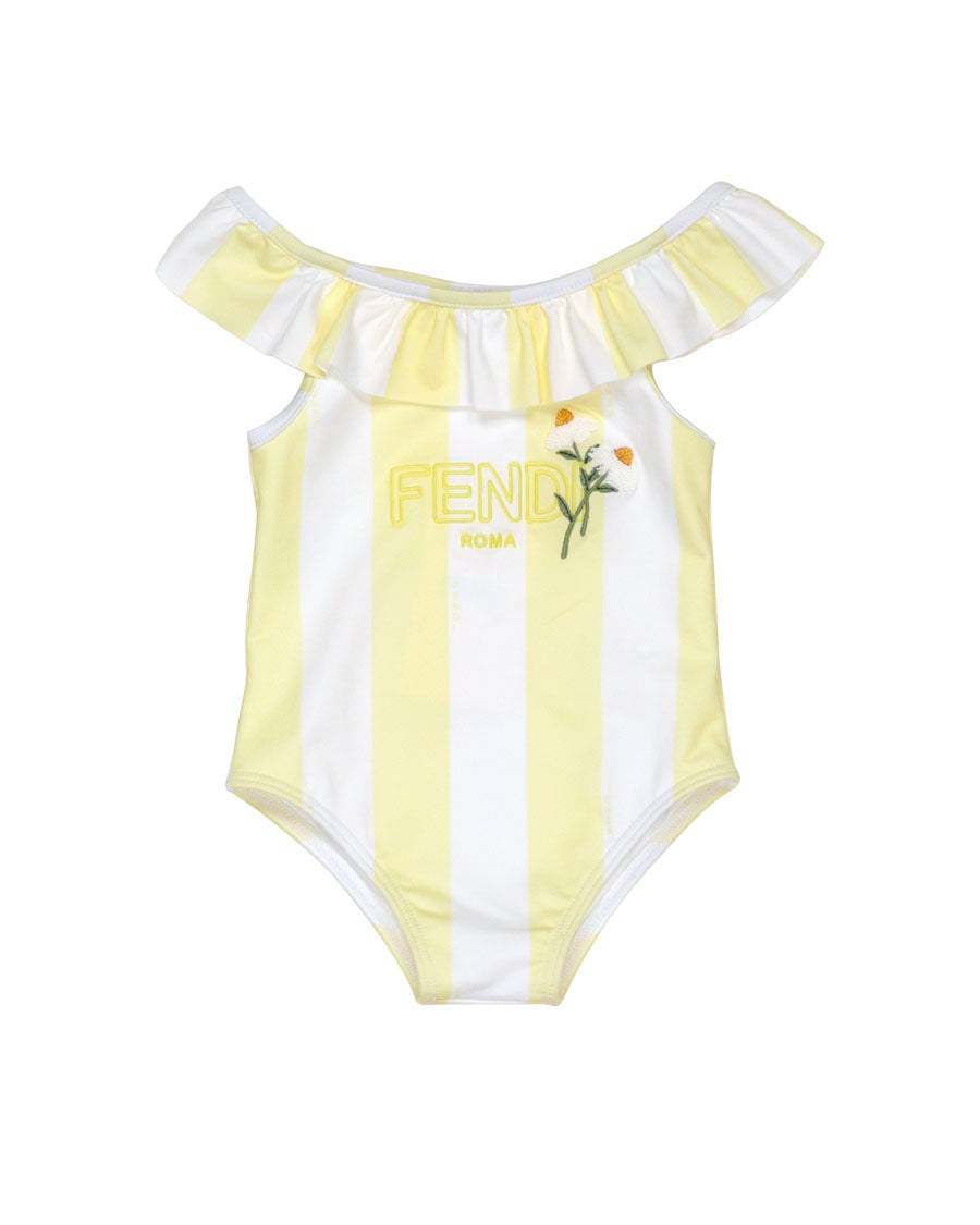 Striped Floral Print Swimsuit - Lemonade