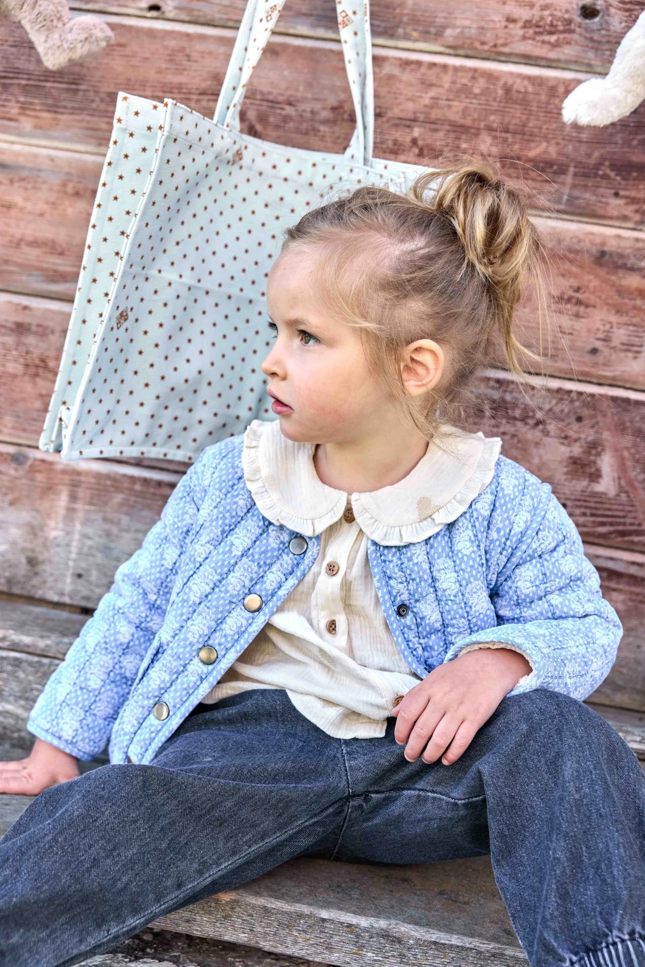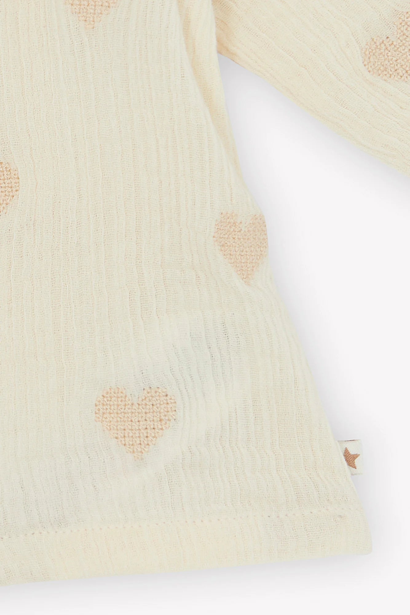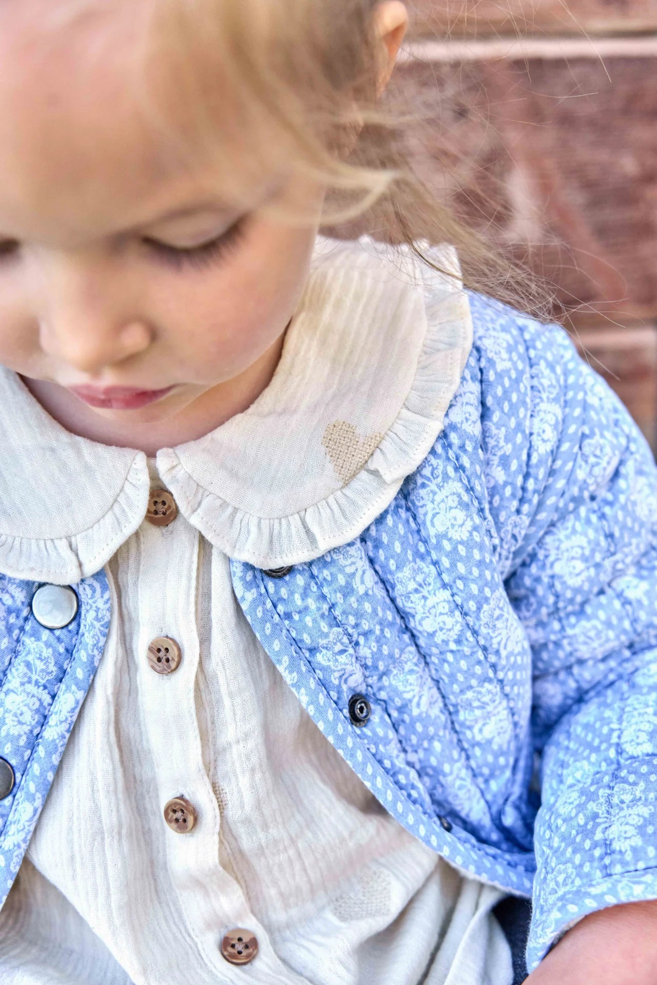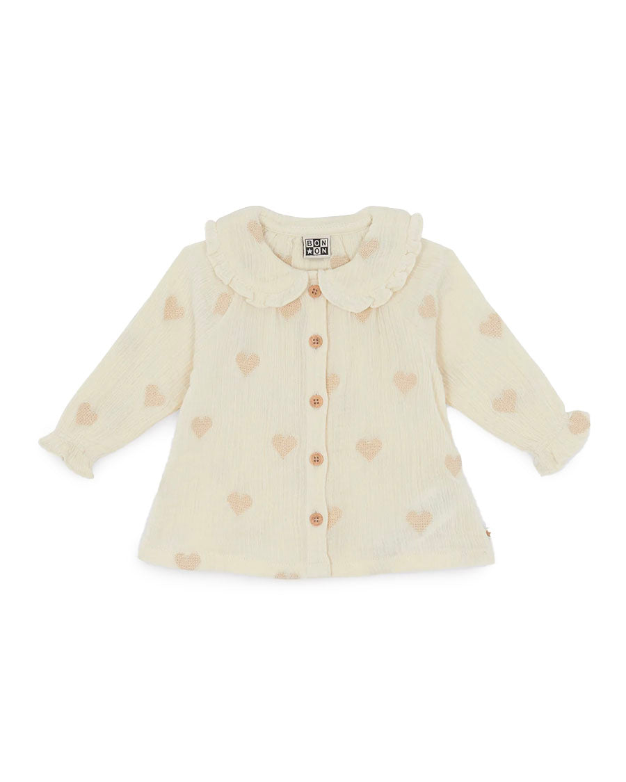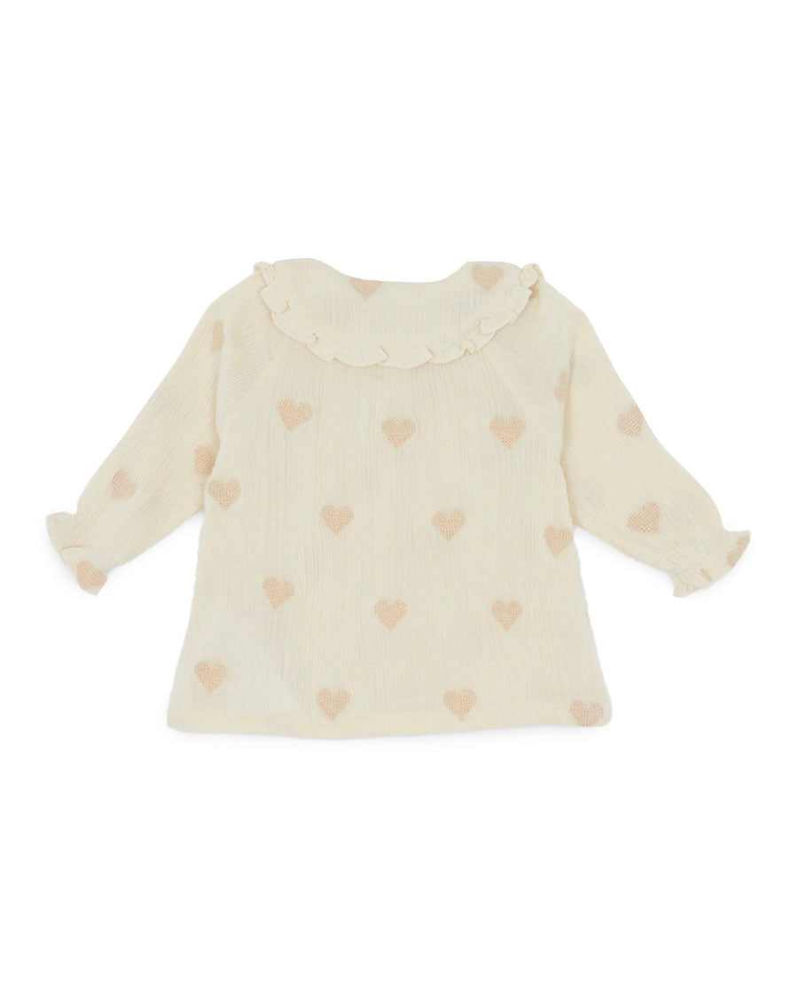 There Blouse Fig from the "Winter Tales" collection is a real enchantment for little girls! With its embroidered hearts and its Ruffled collar, It brings a touch of winter magic. Perfect for cocooning days, she goes perfectly with a Trousers in Velvet For a cozy look. A room that combines comfort and charm, ideal for adding sweetness to the winter adventures of small fashionistas!