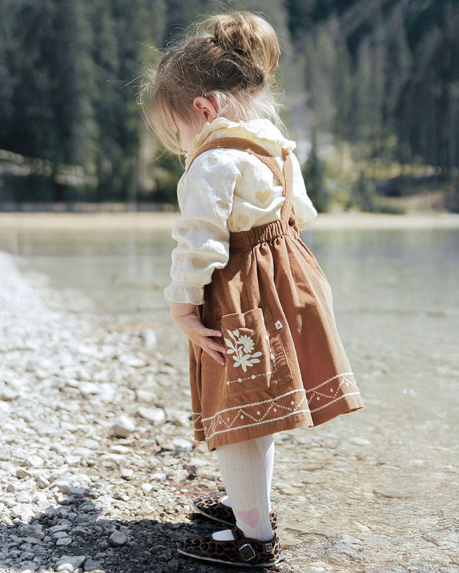 There Dress Madeleine in Nutcracker is a real treasure for little coquettes! With its Braces has Ruffles Broken by hand, she invites us to reverie and sweetness. Made of mini Velvet 100% cotton, it offers unparalleled comfort for budding explorers. Its flared fit makes it possible to twirl lightly. To associate with Slippers Cozy for a tender look full of charm!