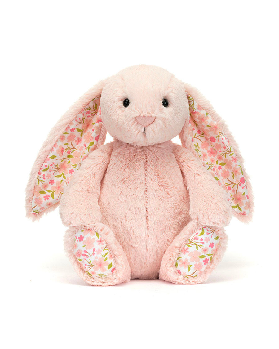 Blossom Blush Bunny has been wandering among the Sakura, and collected some of the blooms. In iconic blush-pink Bashful fur with a cream bobtail, Blossom Blush Bunny has soft cotton floral ears and feet, printed with an original Jellycat design of pink flowers and green leaves. The floral gift that keeps on giving.