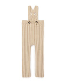 A ribbed overall in a Merino wool knit, with adjustable straps and horn button closure.