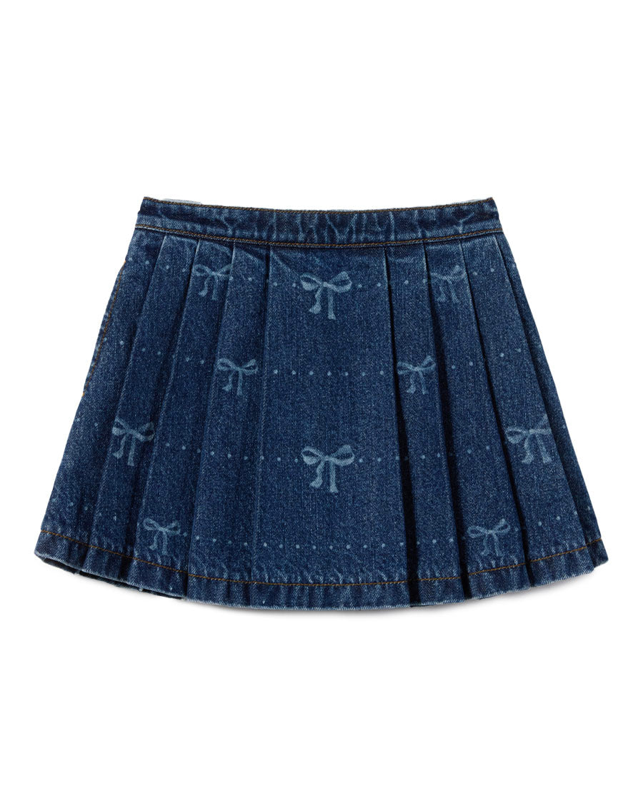 A mini-me take on our bow-topped denim, this irresistible skirt is accented with white printed bows for good measure. Wear with the matching jacket for a mini-me take on the Texan tuxedo.