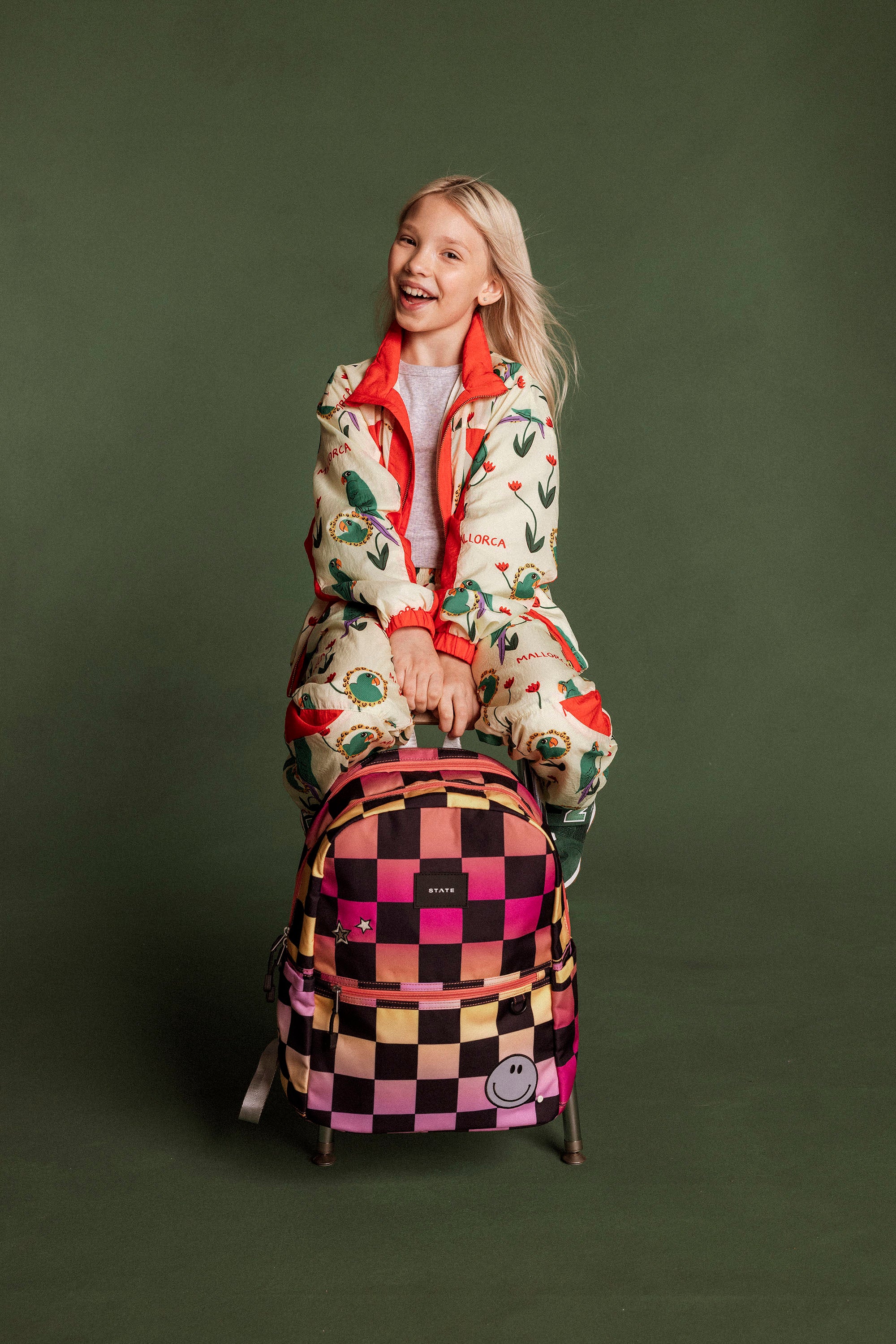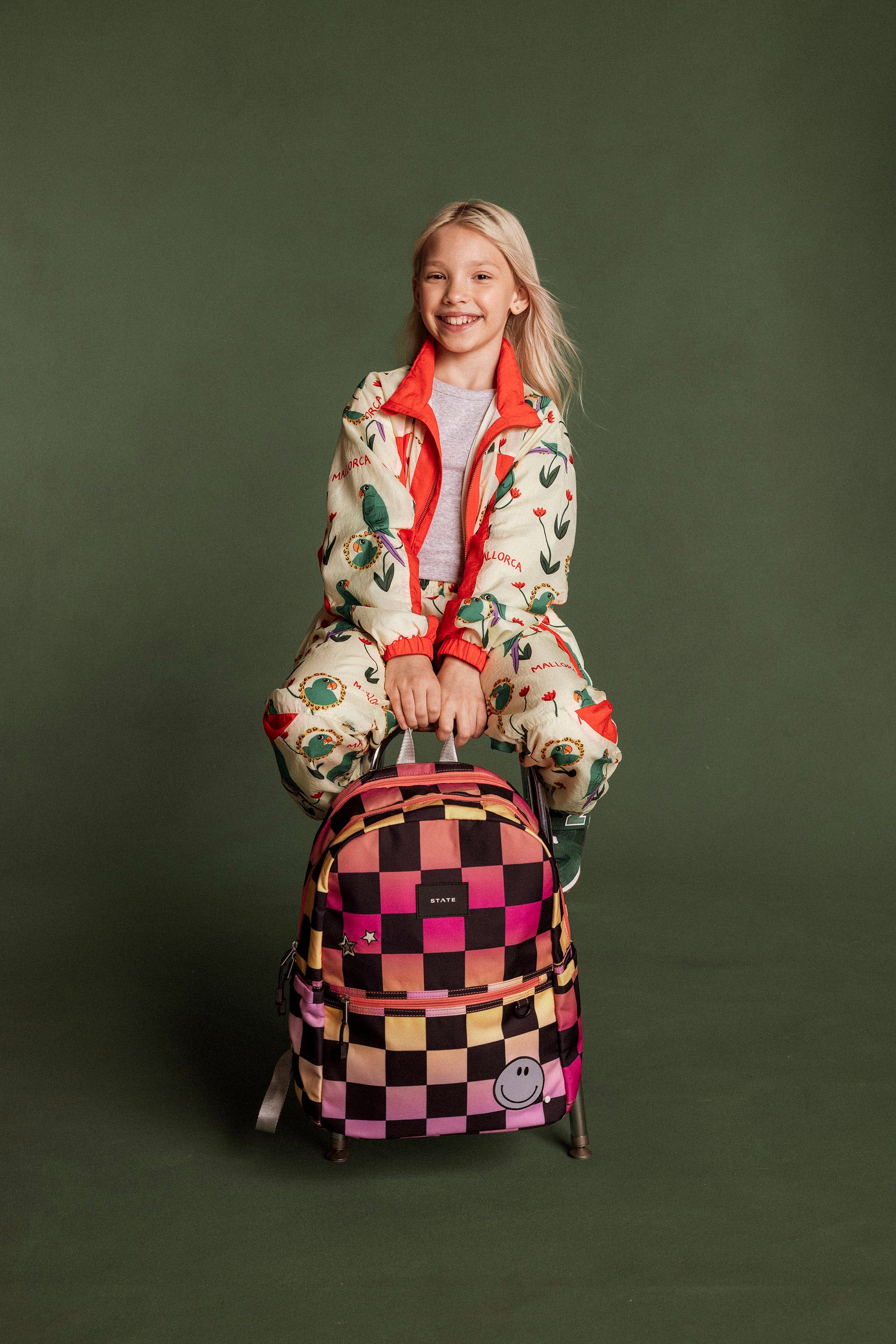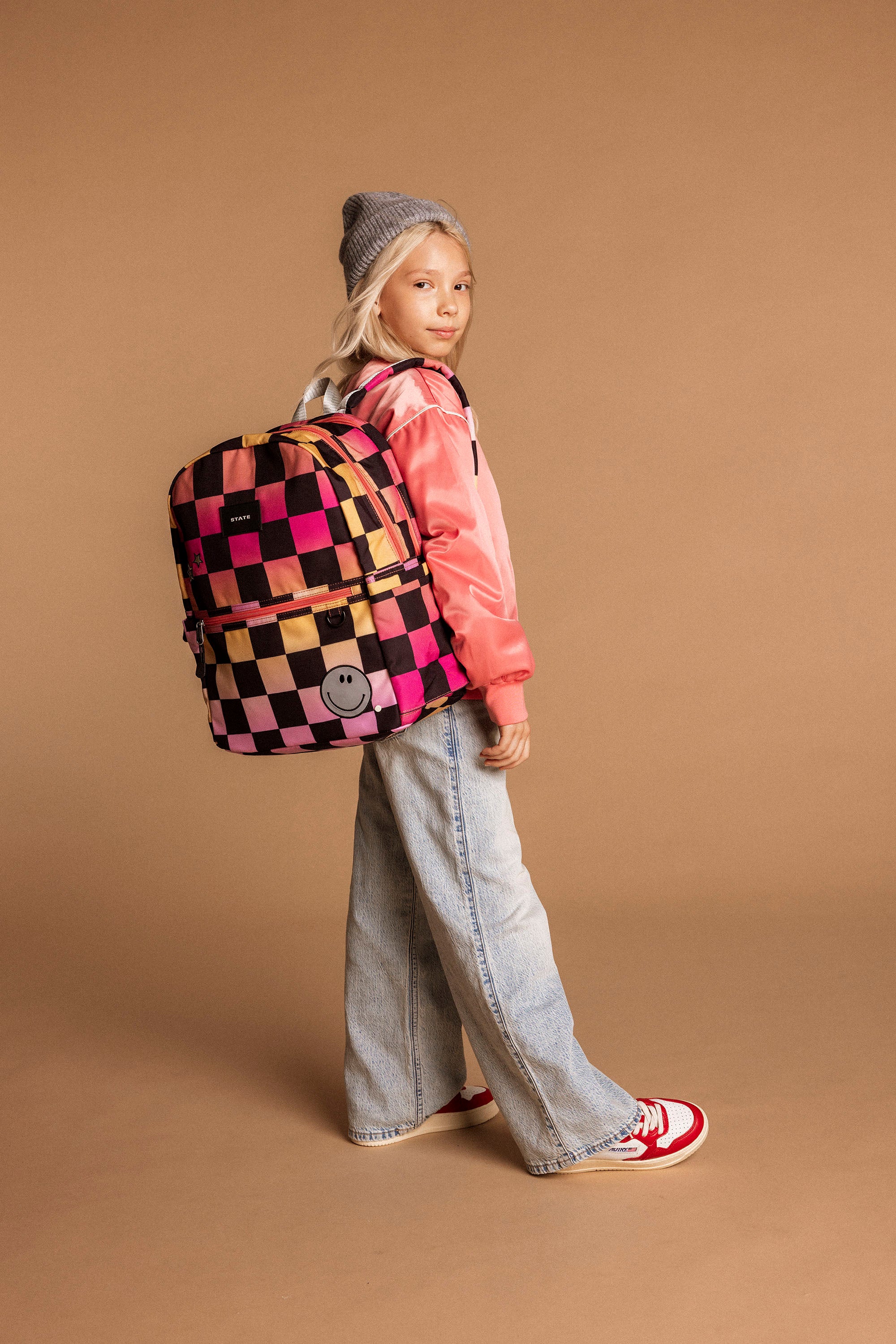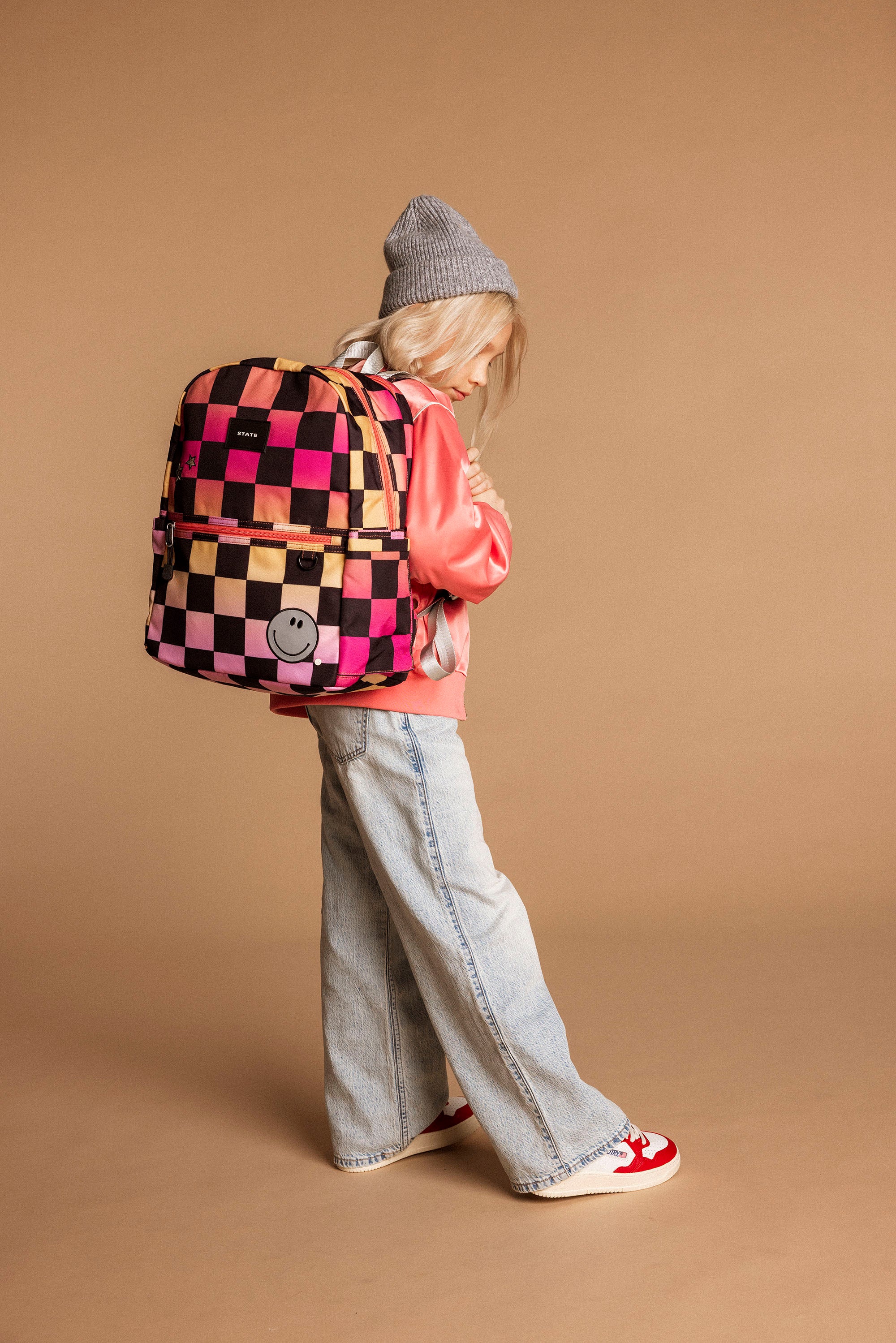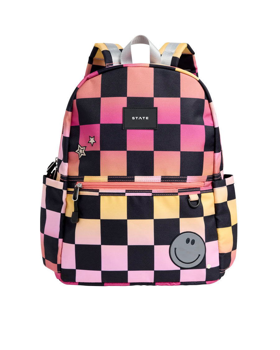 Kane Double Pocket Backpack - Pink Checkerboard