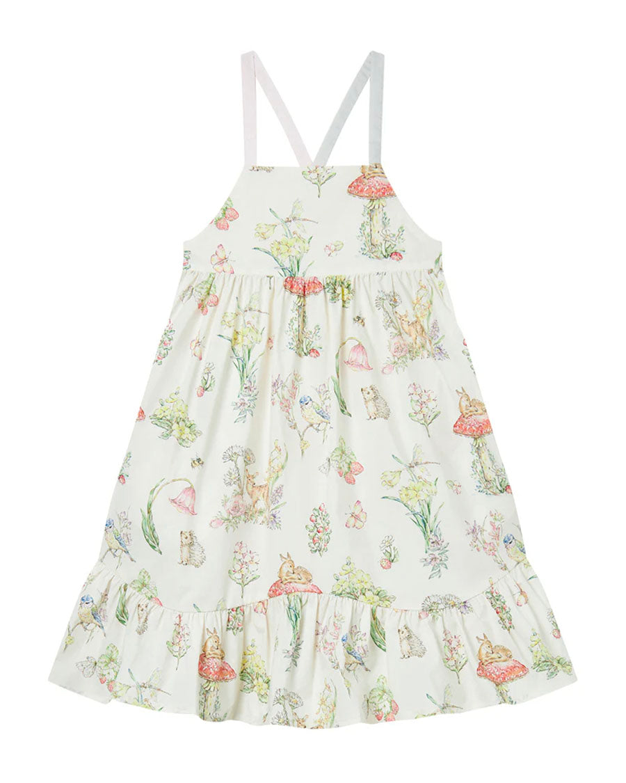 Introducing the girls ivory flower print strap dress from Stella McCartney Kids. Crafted from soft cotton, this sleeveless dress features an elegant floral print with embellishments, offering both comfort and style. Perfect for any occasion, your little one will feel effortlessly chic in this dress.