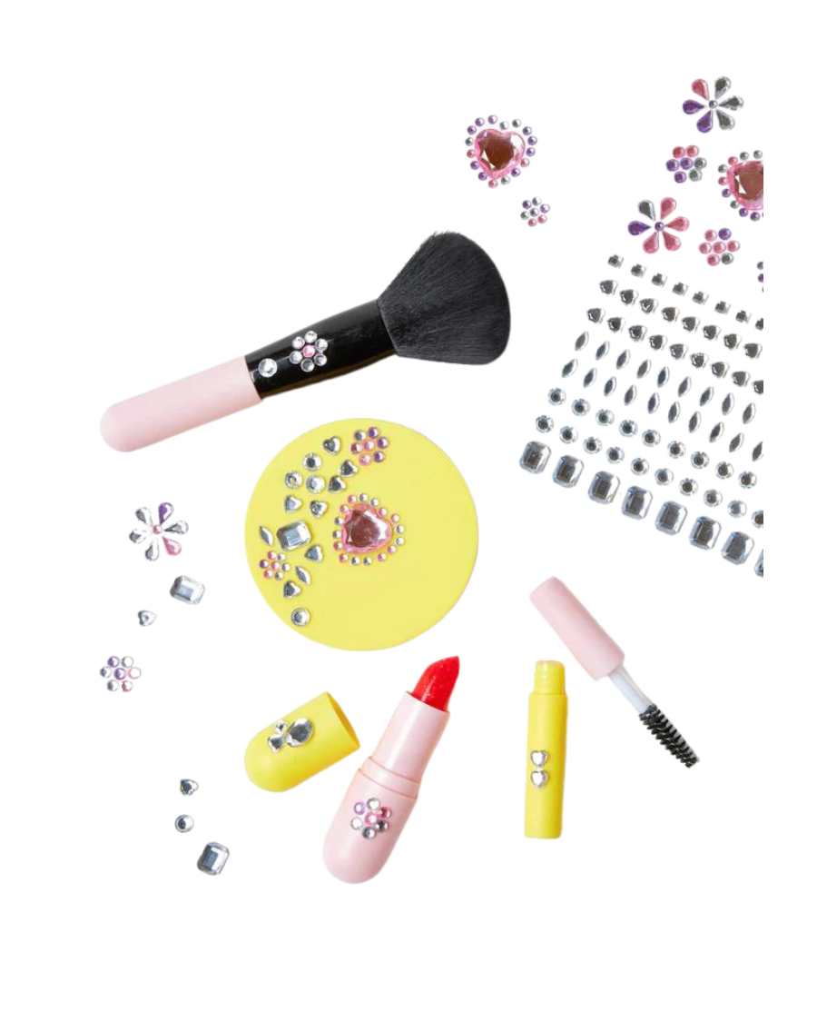 Inspired by the mischievous fun of raiding Mom’s makeup drawer, the Mom’s Makeup Play Set gives kids the joy of their very own versions! Featuring REAL makeup for kids, the products are safe for play and little one’s skin. The set includes a clear mascara, clear lipstick, pale pink blush, and blush brush—plus, gem stickers for decorating the compact and tubes. It’s a craft, a toy, and a dress-up must-have all in one!