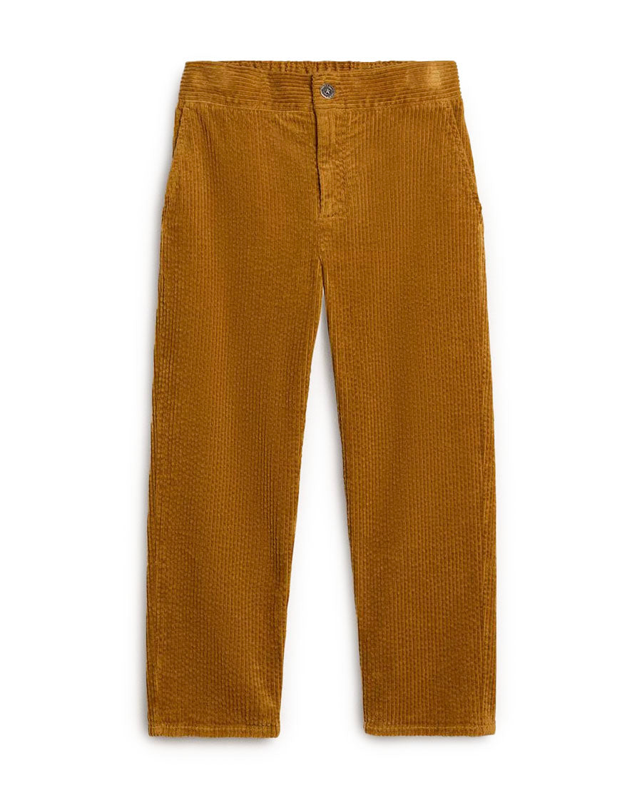 We’ve spent years creating, shaping, and reshaping, never settling for less. In tobacco-colored cotton, these boys' chinos feature vertical ribbing and logo embroidery on the back. The four pockets add the finishing touch.