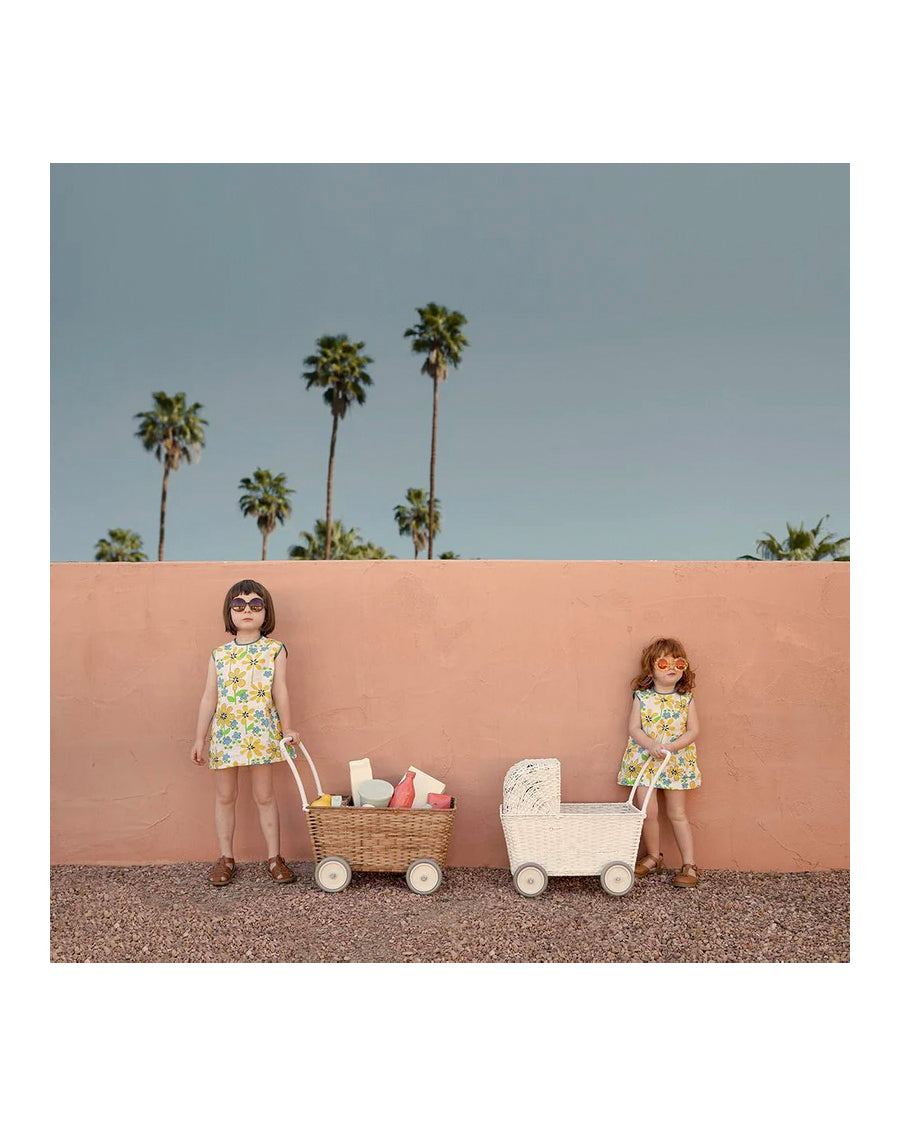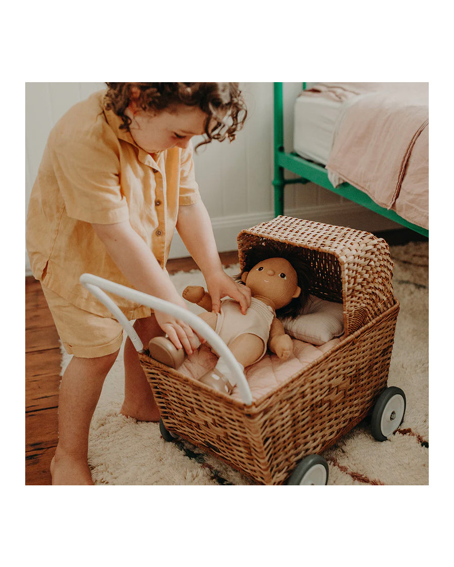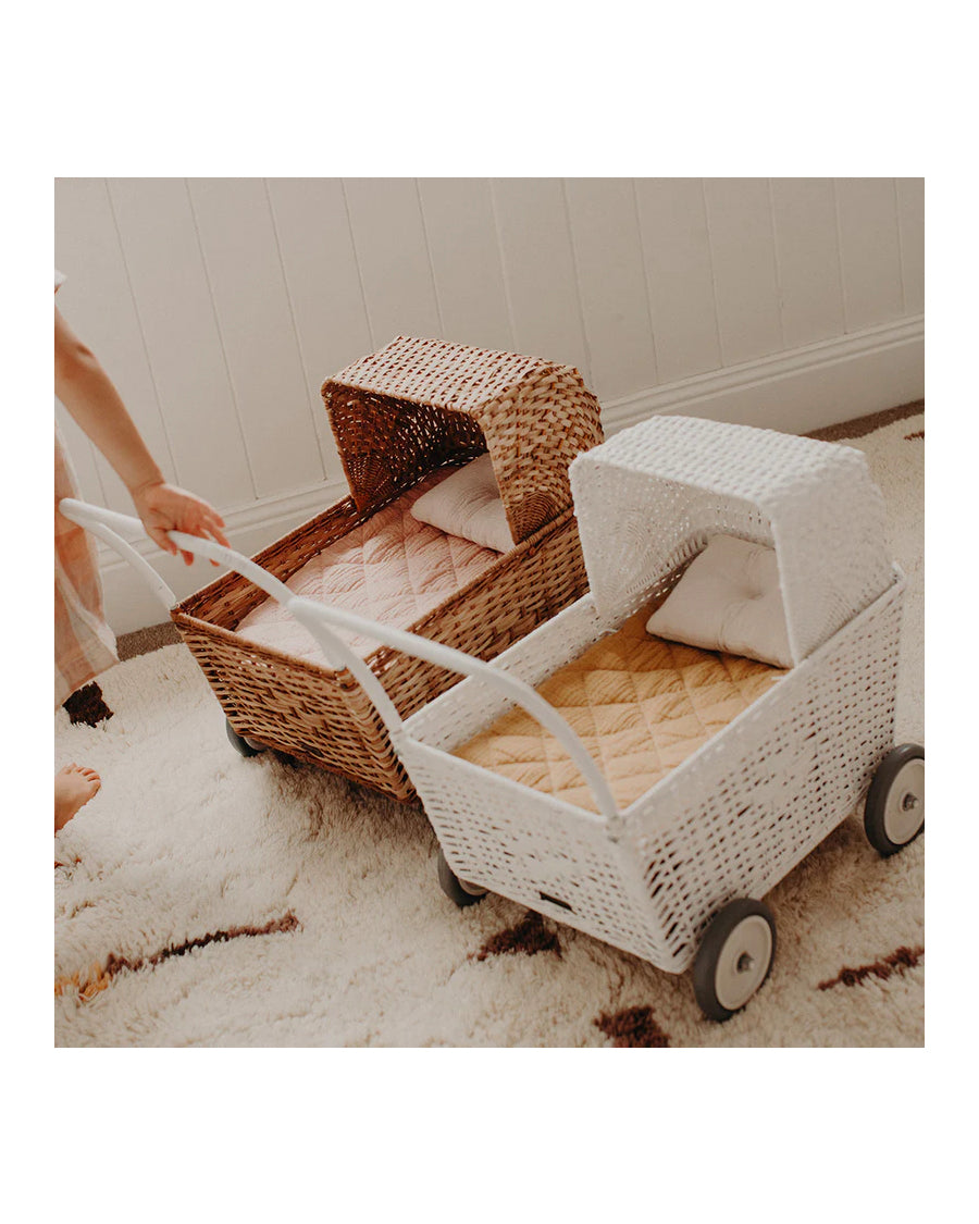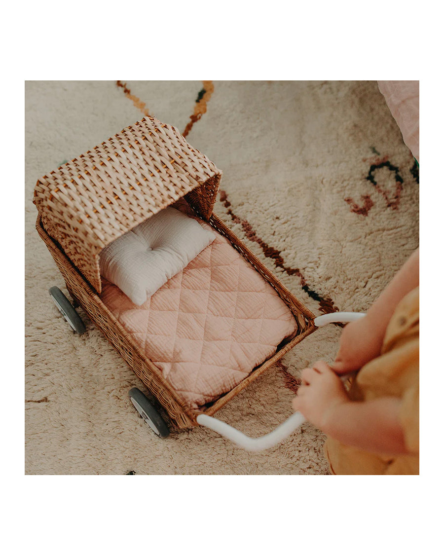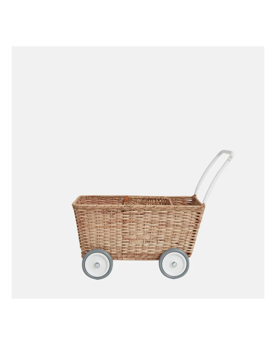 Strolley is a revolutionary design in imaginative play. This hand-woven rattan basket on wheels switches from a pram to a shopping trolley, by just lowering the hood of the pram.Perfect for dolls, pretend play, fruits and veggies or for your little one to push around their favourite toys.