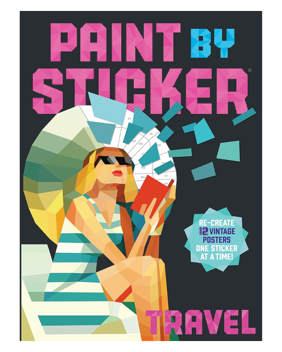 Welcome to the golden age of travel. A transporting activity for crafters and adventurers alike, PAINT BY STICKER:TRAVEL includes everything you need to create 12 vintage, poster-style paintings that evoke the romance of faraway places. And note—the card-stick pages are perforated, so the finished picture can easily be removed for framing.