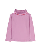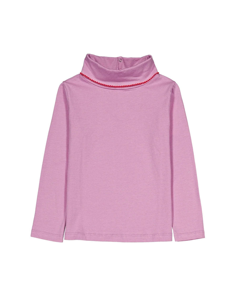 Long-sleeved turtleneck T-shirt in plain jersey with contrasting croquet at the end. Back press studs for collar opening.