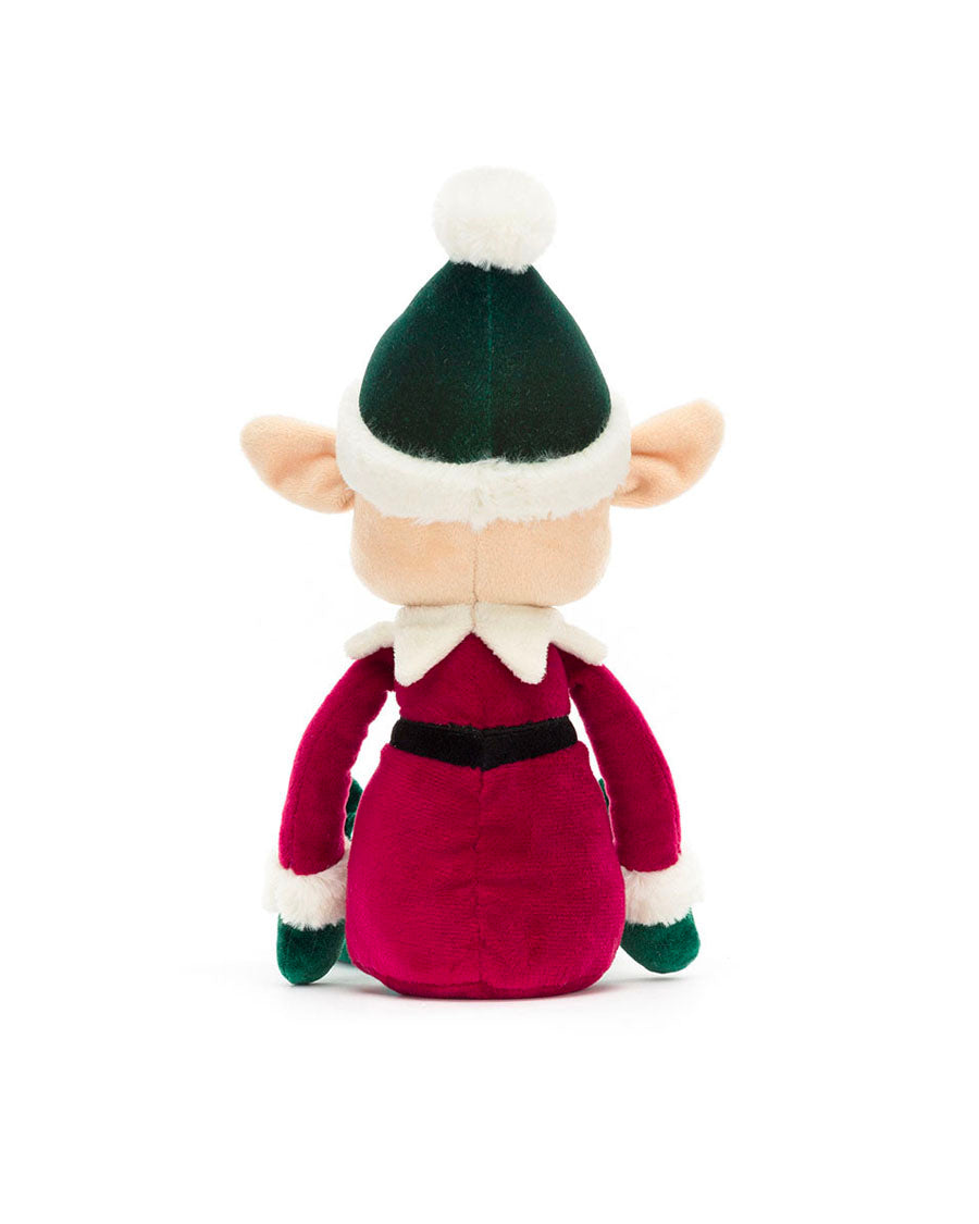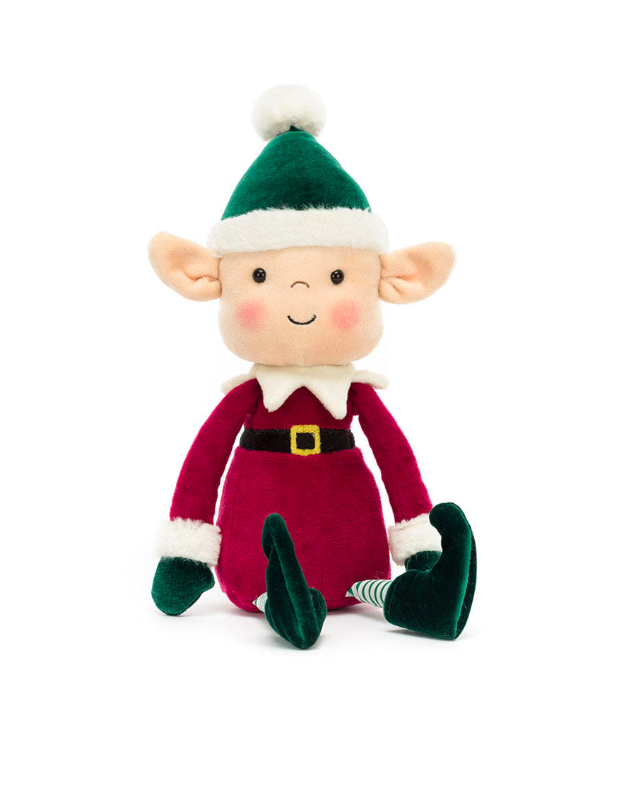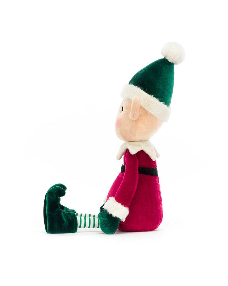 Everyone needs a helper, not just Santa! Eldo Elf is a charming friend with rosy cheeks and fold-detail ears. This dandy pixie wears a mulberry suit with a cream star collar and gold-buckled belt, paired with curly velvet boots and matching ivy green bobble hat. With an affable smile, Eldo is here to boost the Christmas cheer!