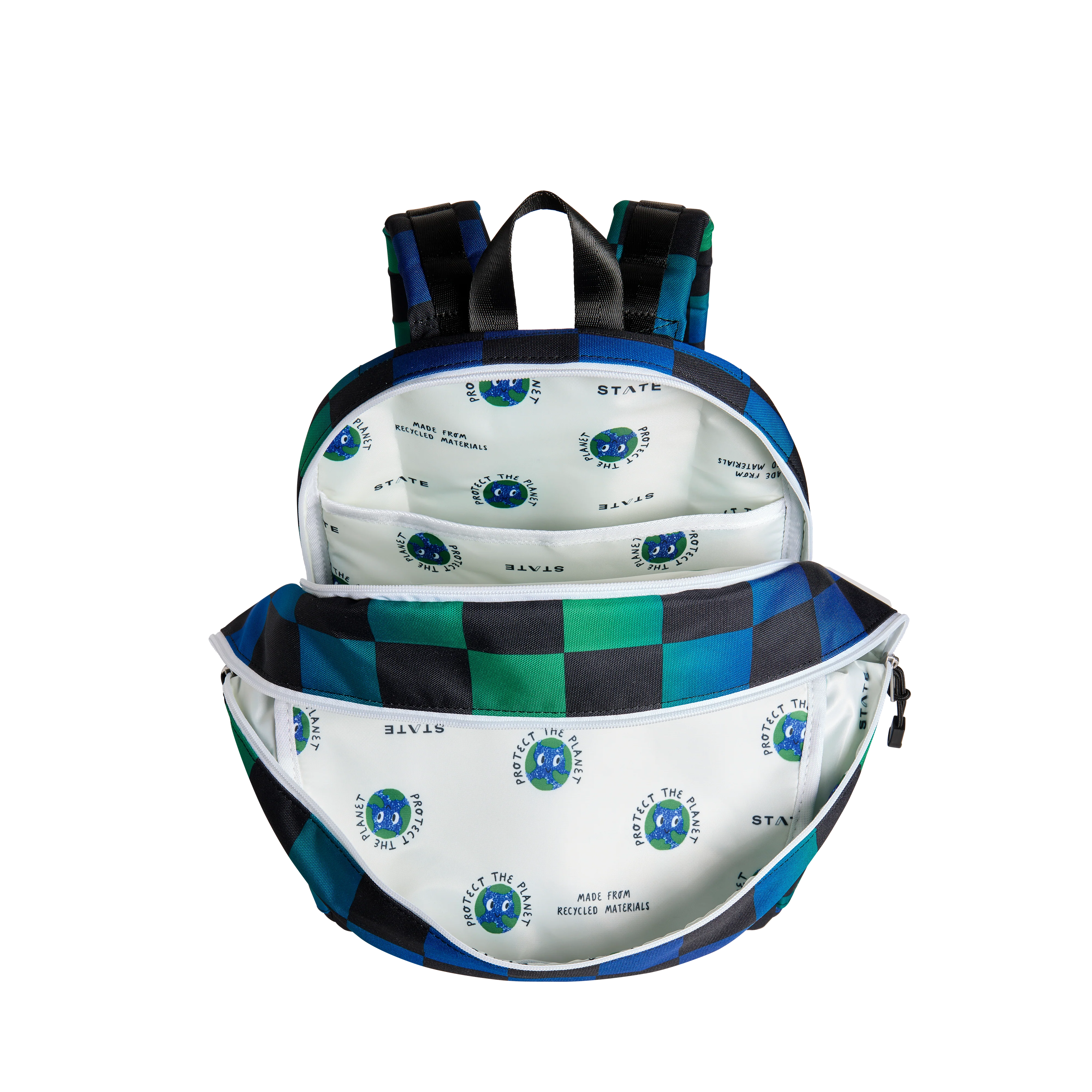 Recommended for 3rd grade and up, this backpack is the perfect size for kids who want the length of the Kane Backpack but need a little more room. With two main compartments, it offers double the capacity, fits a 15” laptop, up to two 2” binders or textbooks.