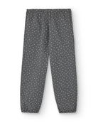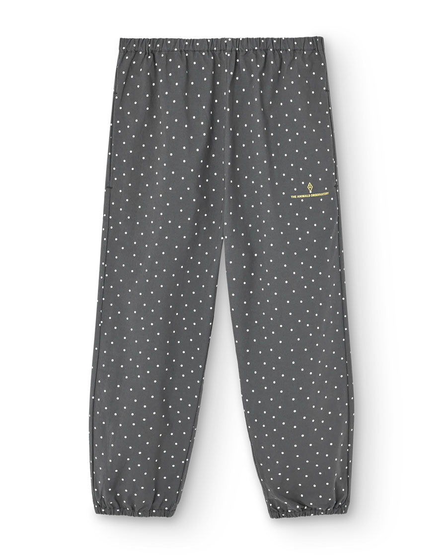Playful polka dots and elastic finishes make these dark grey trousers a cozy must-have in fall winter 2025 wardrobes.