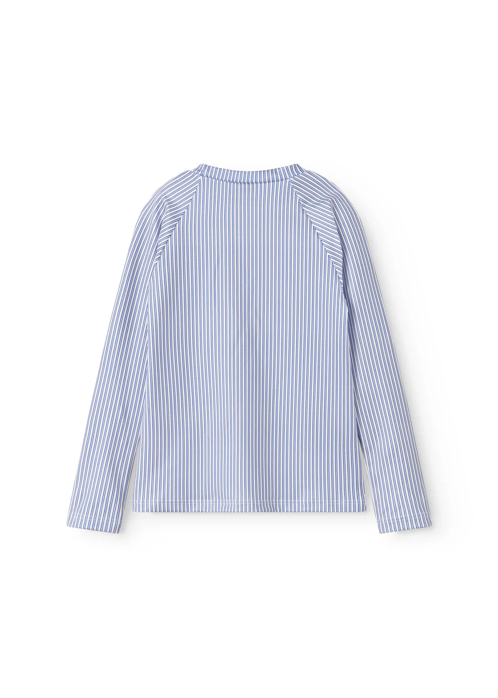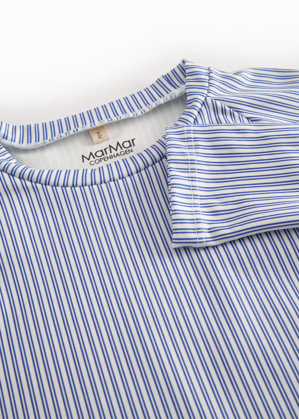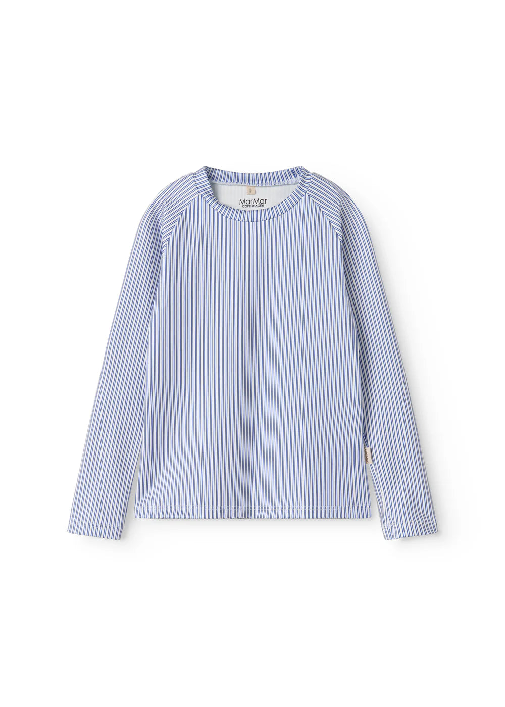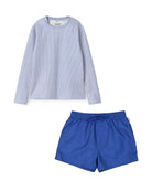 Children's swimsuit with long sleeves. The swimsuit has a nice striped print and is comfortable to wear.