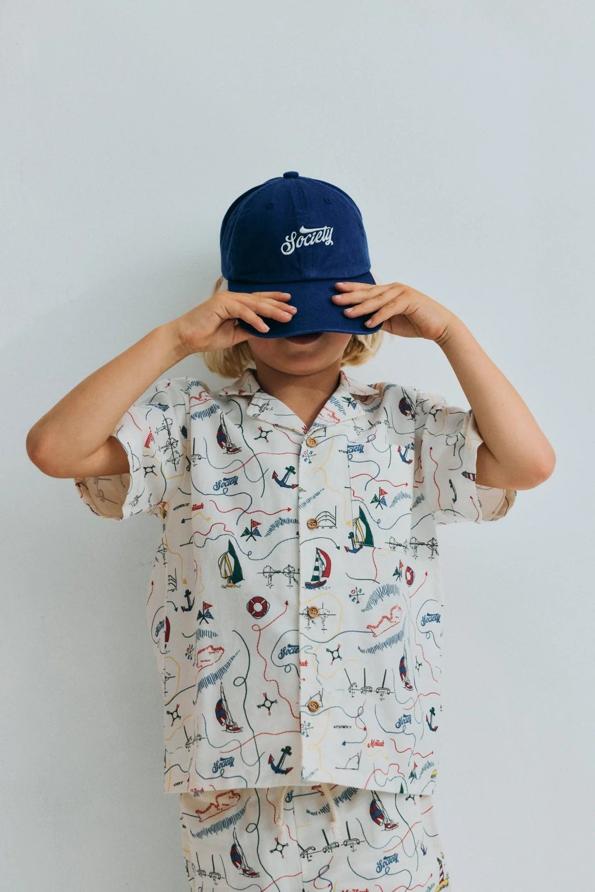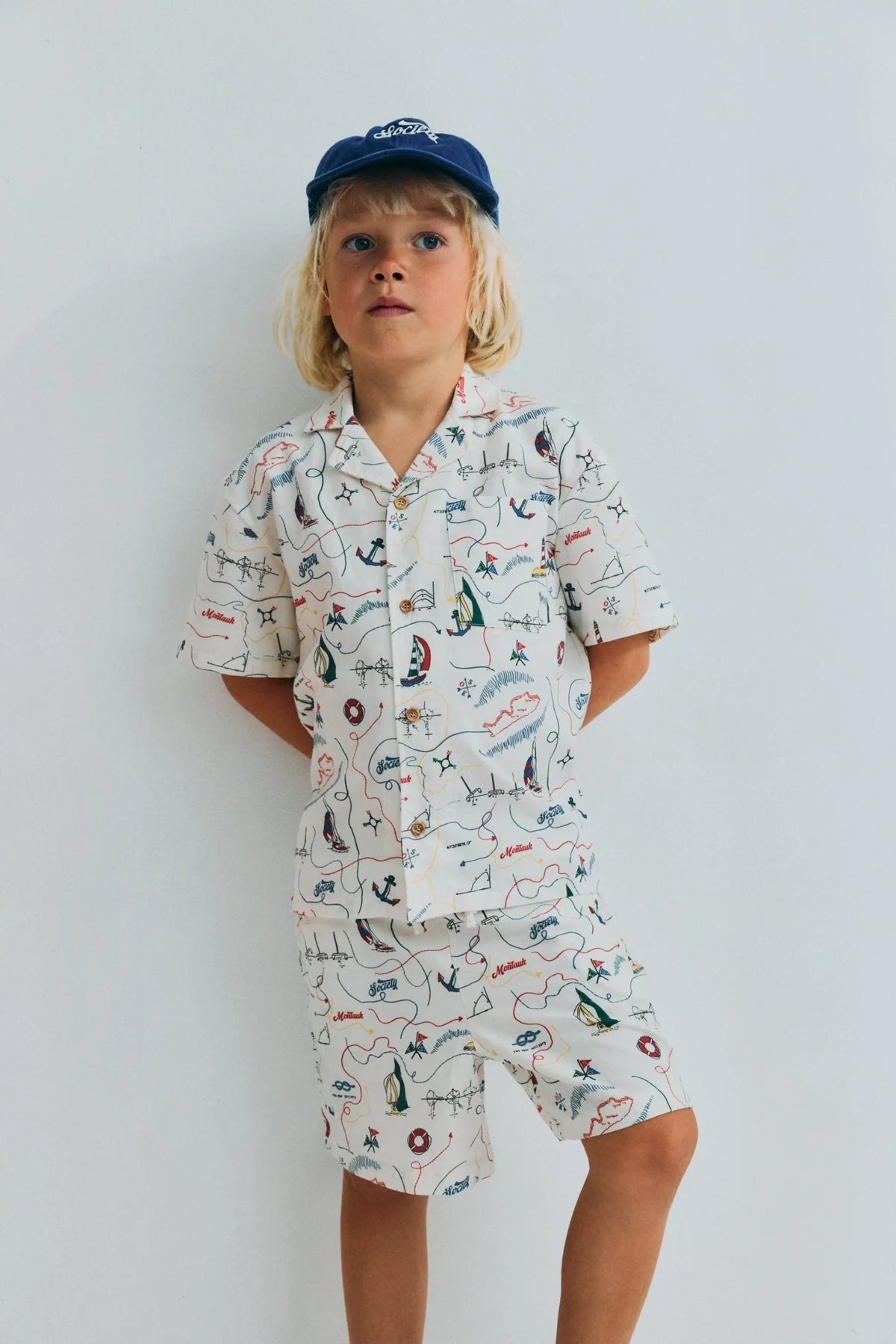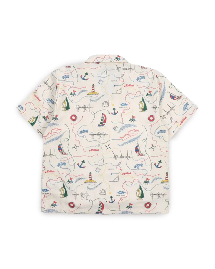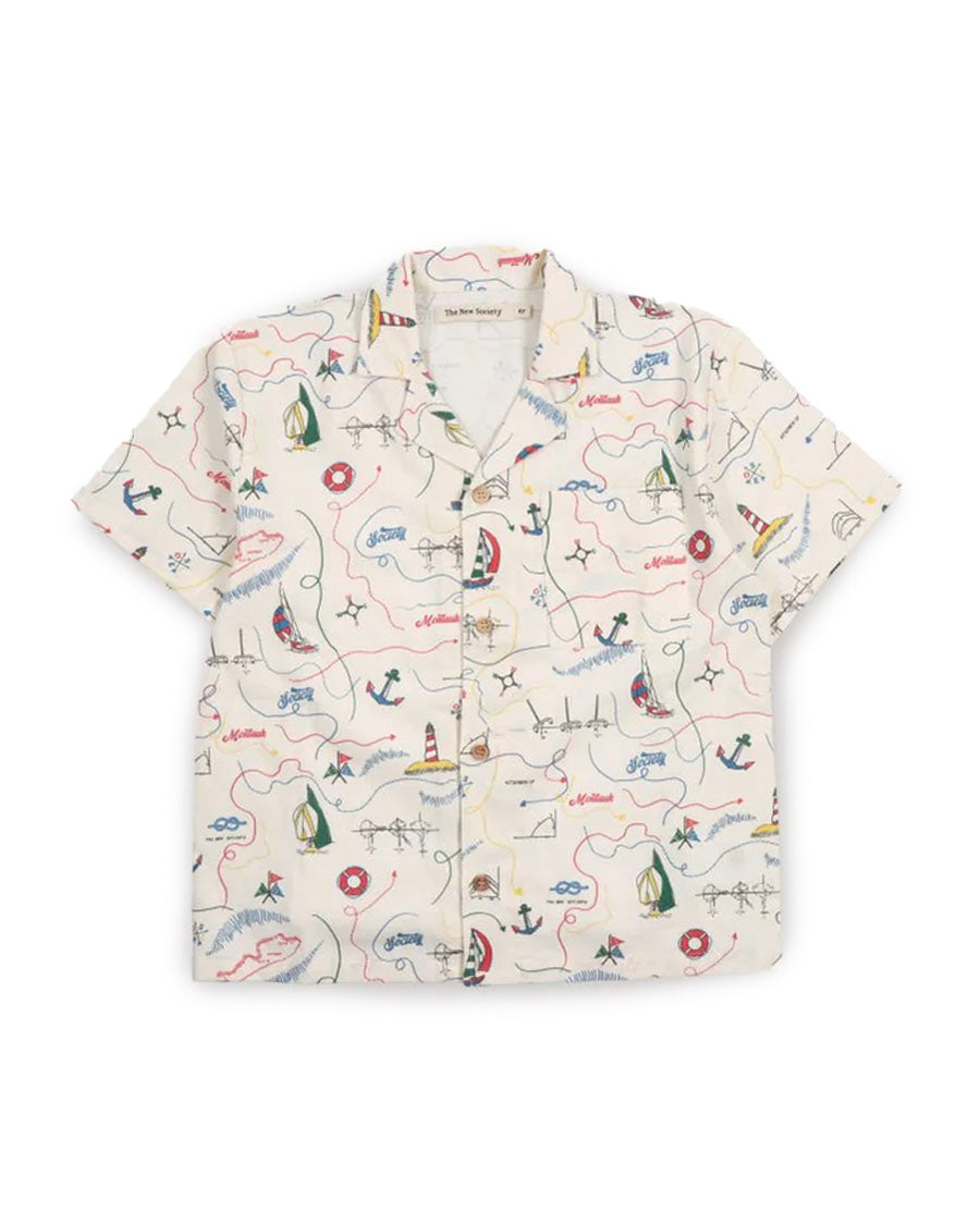 Short sleeve shirt in soft cotton featuring a unique multicolor map print and a front button closure with wooden buttons. Pairs perfectly with the matching bermuda shorts for a complete look.