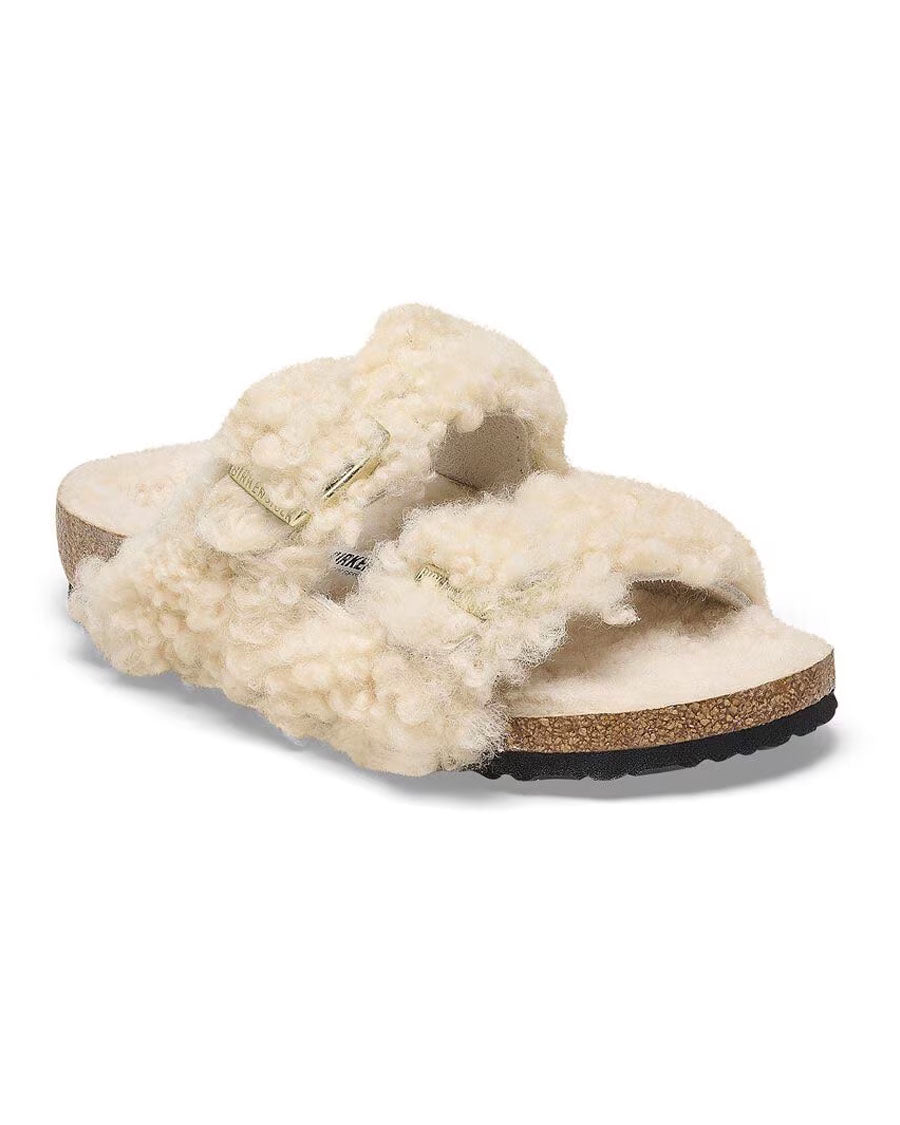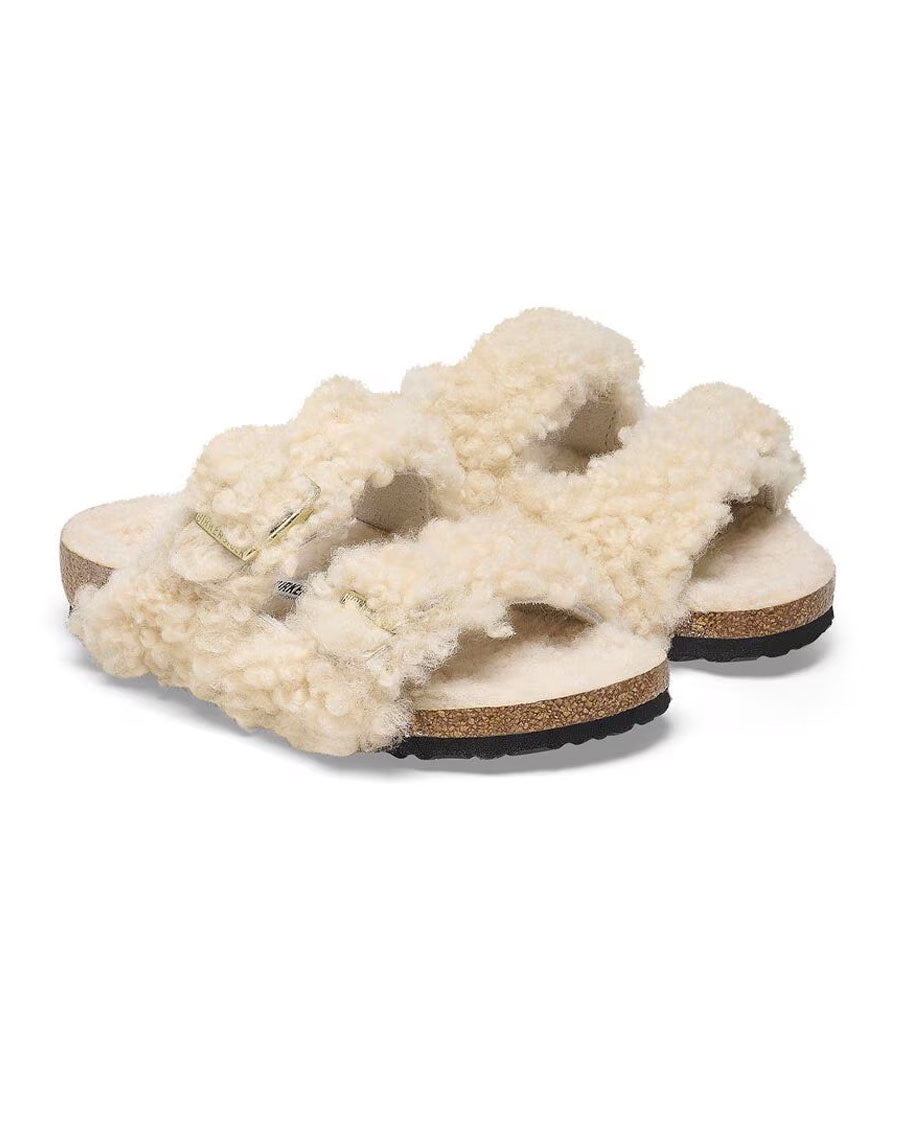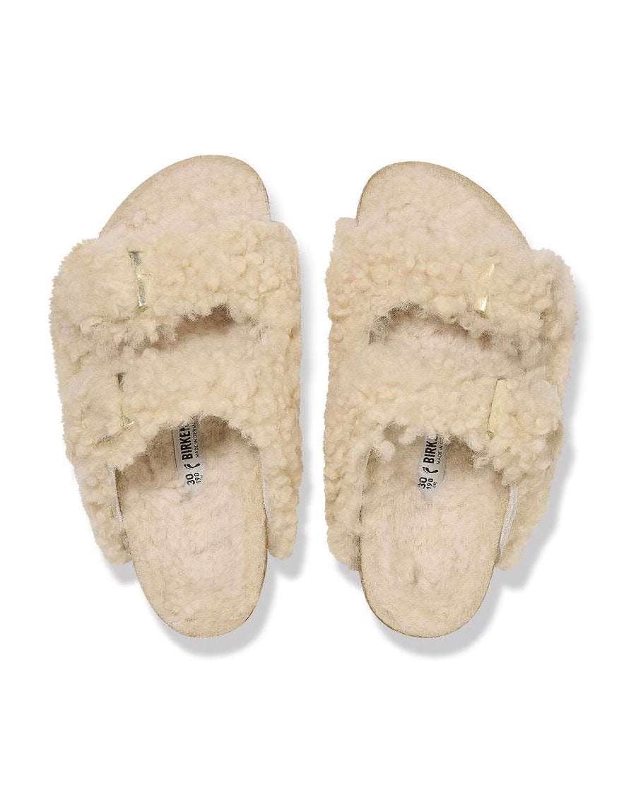 Oh-so-fluffy and a kid favorite. Plush teddy shearling transforms the Arizona's iconic, two-strap design into their favorite slip-on of the season. Teddy shearling even pads the footbed lining for the ultimate cozy finish. Complete with classic BIRKENSTOCK design elements, like a contoured cork-latex footbed to keep them comfortably on the move.