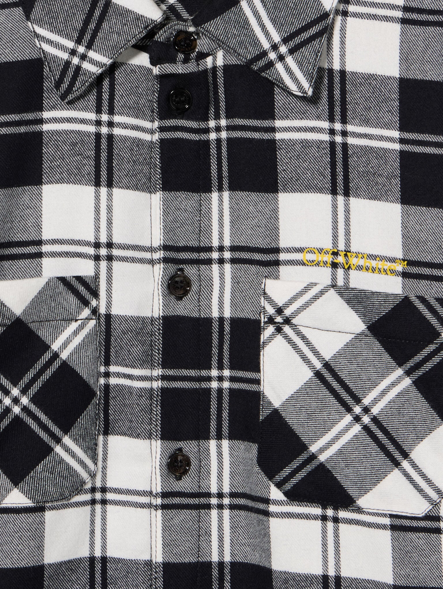 Diagonal flannel shirt with distinct geometric embroidery, crafted from soft cotton flannel, featuring buttoned cuffs and a signature rear motif.