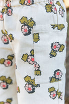 Escape in wild landscapes with the Trousers Liocha with a "Fleur Faroe" pattern! Its elastic size ensures perfect comfort for exploring, while its two side pockets keep the treasures at hand. With his flared silhouette, he invites dance and play under the magical clouds of the Faroe Islands. To associate with a colorful top for an adventurous and stylish look!