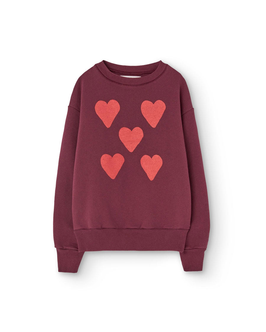 Five charming red hearts dance across this cozy sweatshirt, celebrating kids clothes with sweet, playful energy.