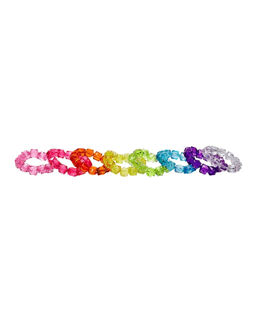 Add a little bling to your outfit! These 14mm chunky cube lucite beads come in every color of the rainbow. Strung on clear stretch jelly cord, these are sized to fit ages 4 and up. Note: Please be sure to select color when ordering.