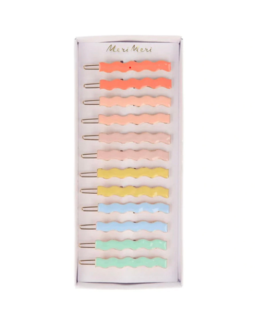 Can't decide what color hair accessories to buy? Now you don't have to! This Meri Meri set gives you 12 in a choice of 6 delightful colors! Wear them all at once for a rainbow effect or mix and match to complement your clothing