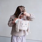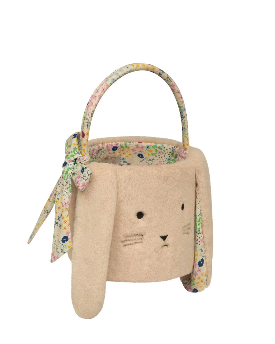 - Crafted from the softest, floral lined fur fabric complete with floppy ears, carry handle and hand tied bow with a sweet embroidered bunny face and a pom pom tail!