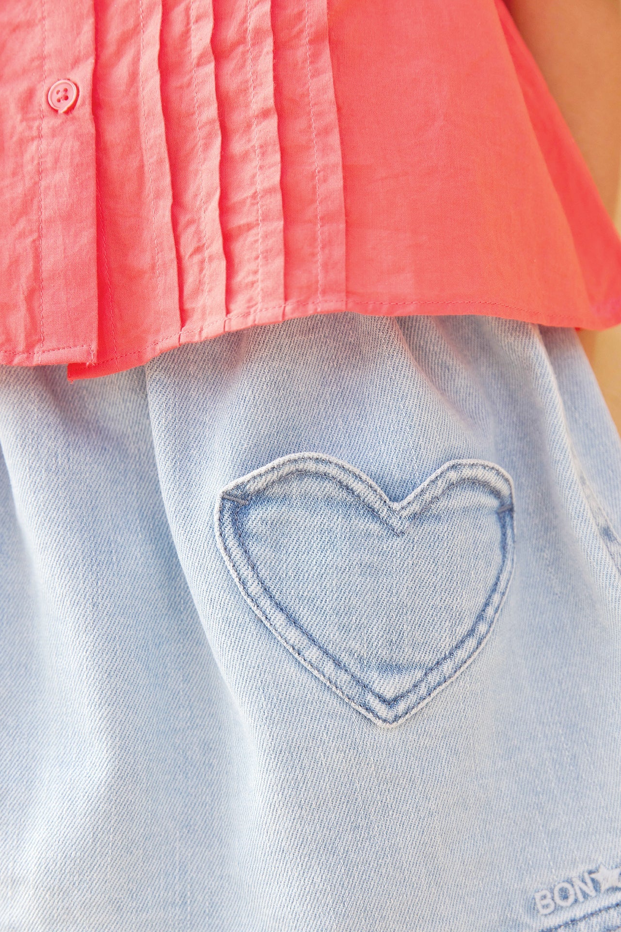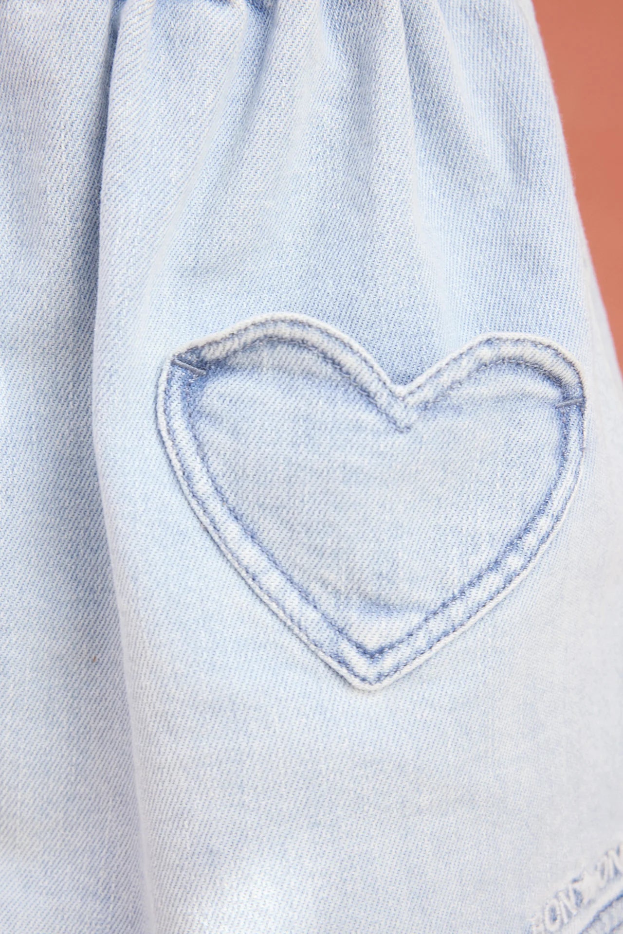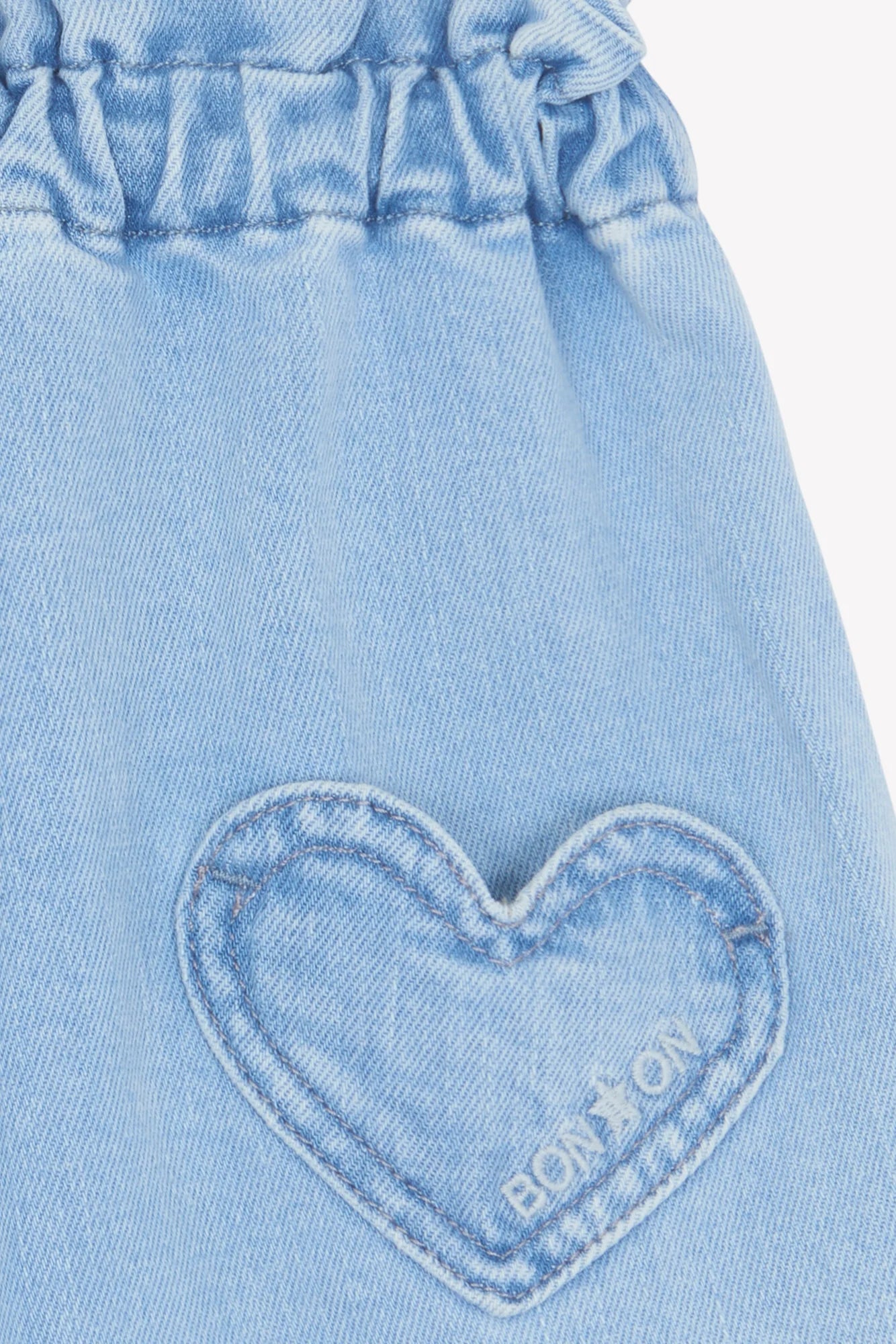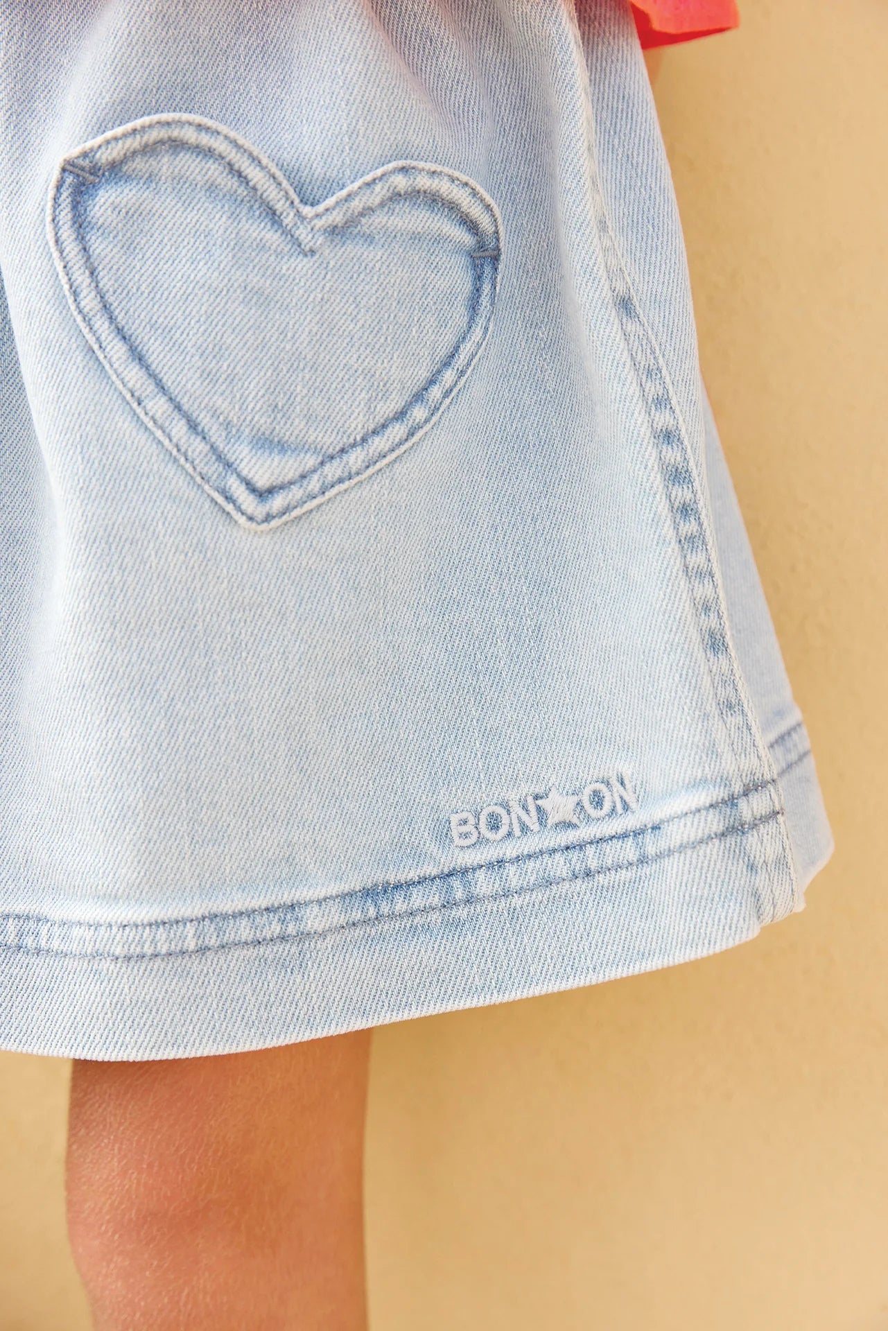 Let yourself be seduced by the Skirt Douchka in bleached denim, an iconic Bonton piece that invites you to live la vida loca! With its elasticated waist and heart-shaped pockets, it is perfect for little dreamers. Made from 100% cotton, it offers comfort and style for everyday adventures. To match with a colorful t-shirt for a joyful and sparkling look!