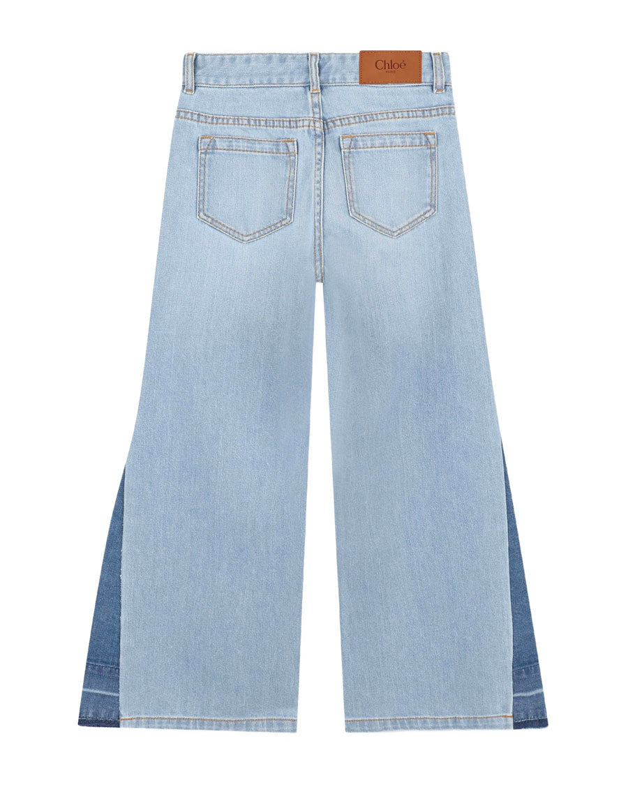 Contrast Panels Denim Trousers - Blue