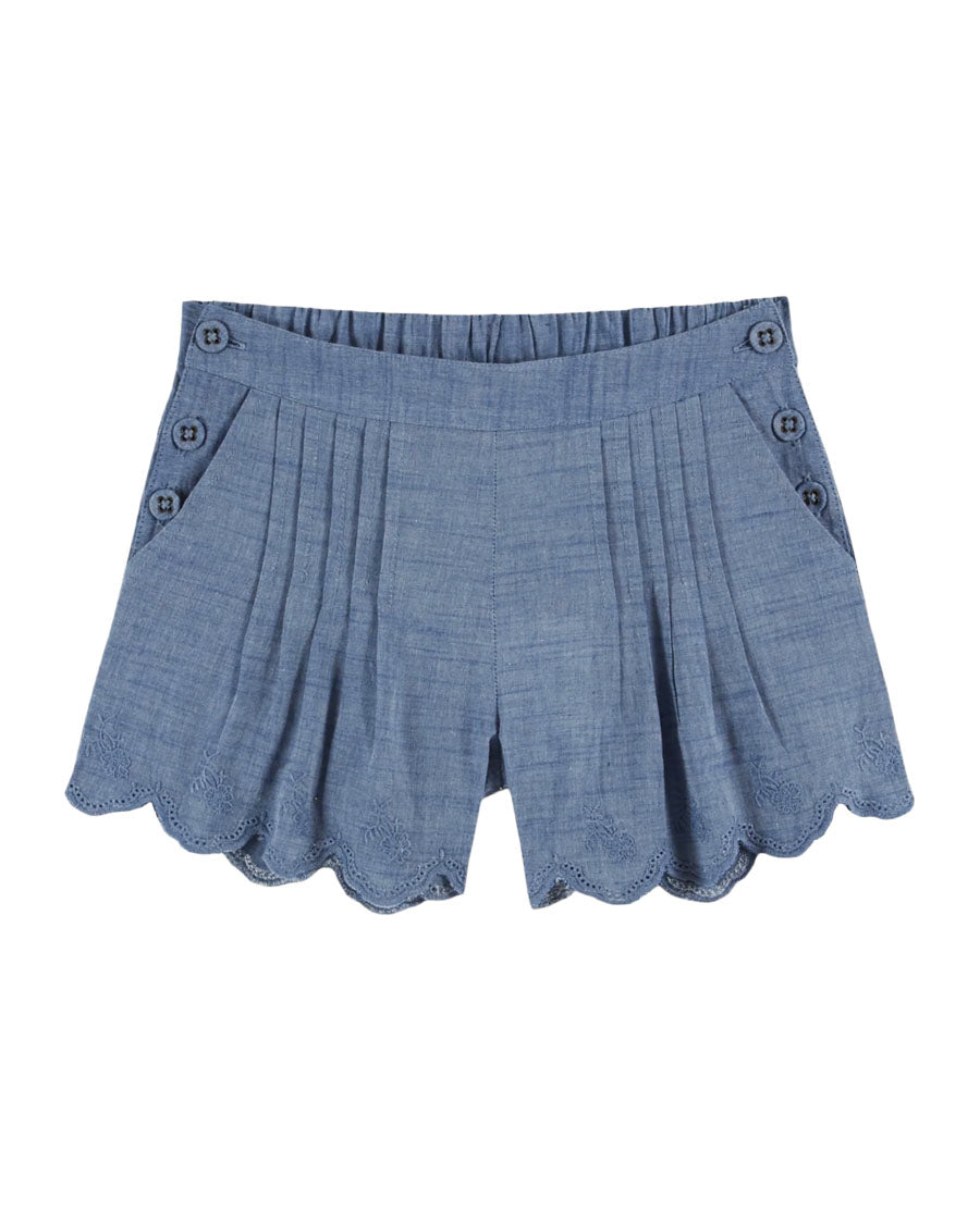 Pleated Bridge Shorts - Chambray