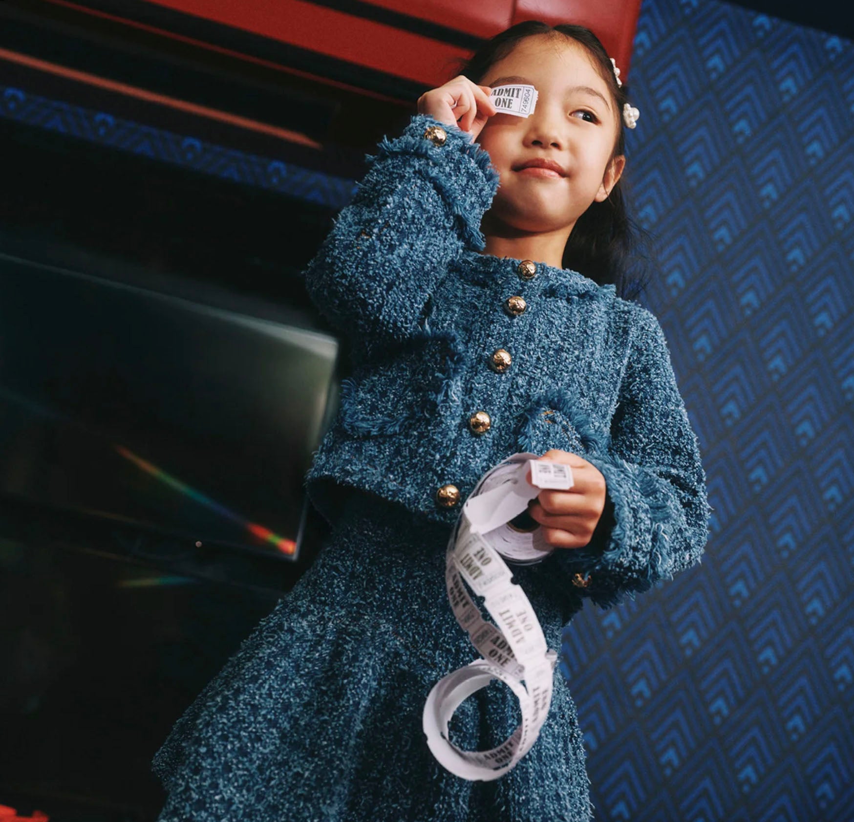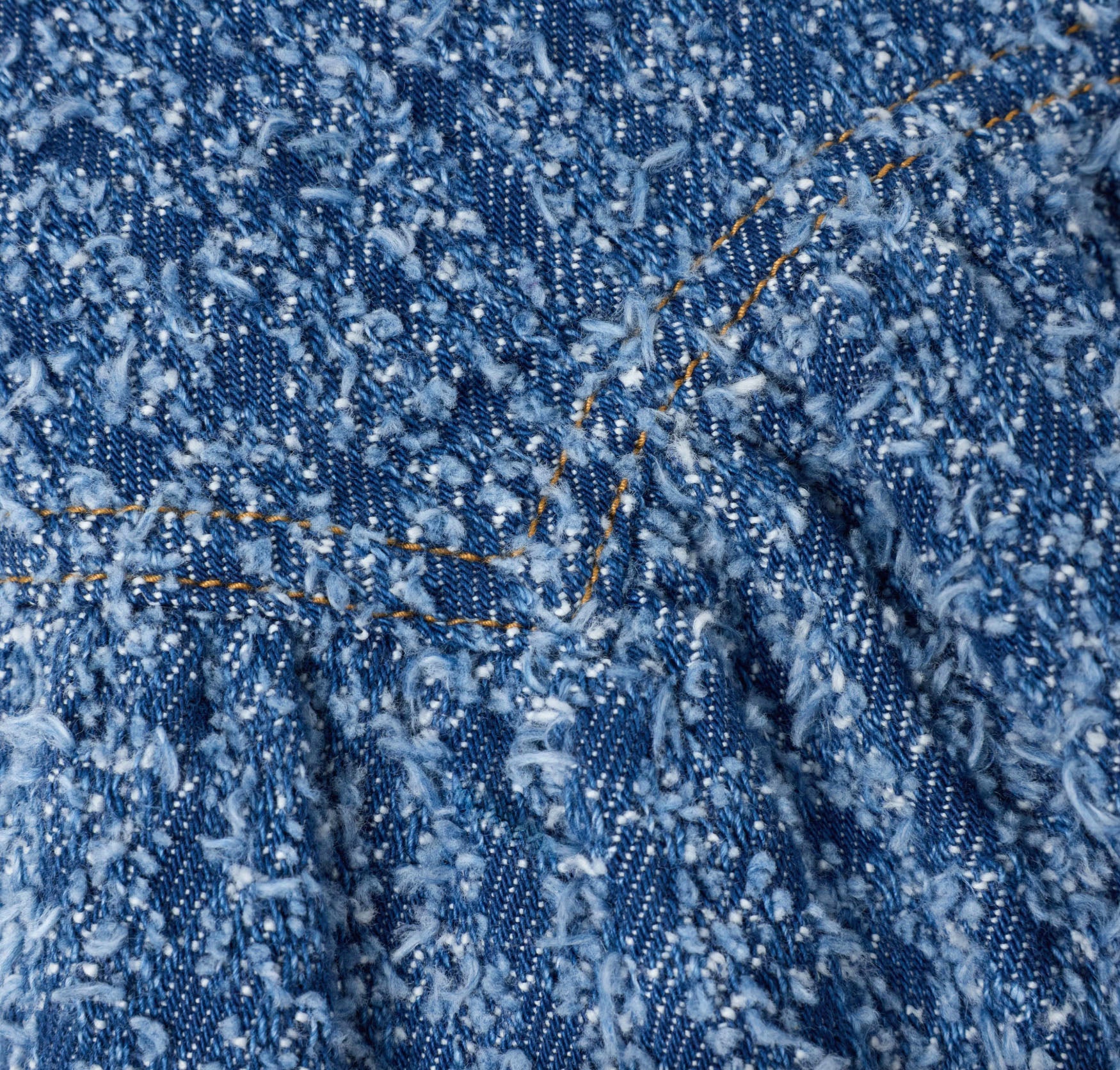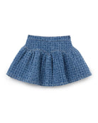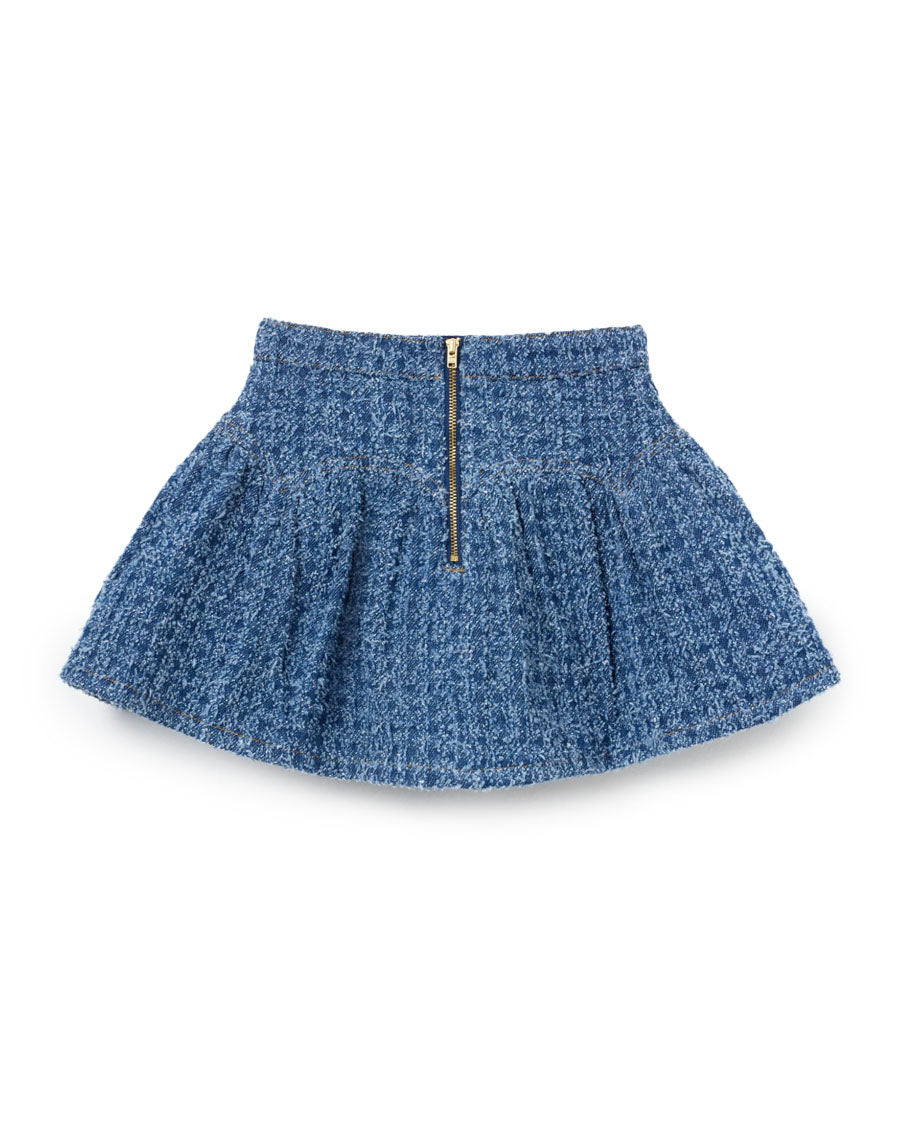 A voluminous silhouette gives stylish appeal to this textured denim mini skirt. Pair with a cardigan for a play date or add our matching jacket and embellished headband for trips to the theatre.