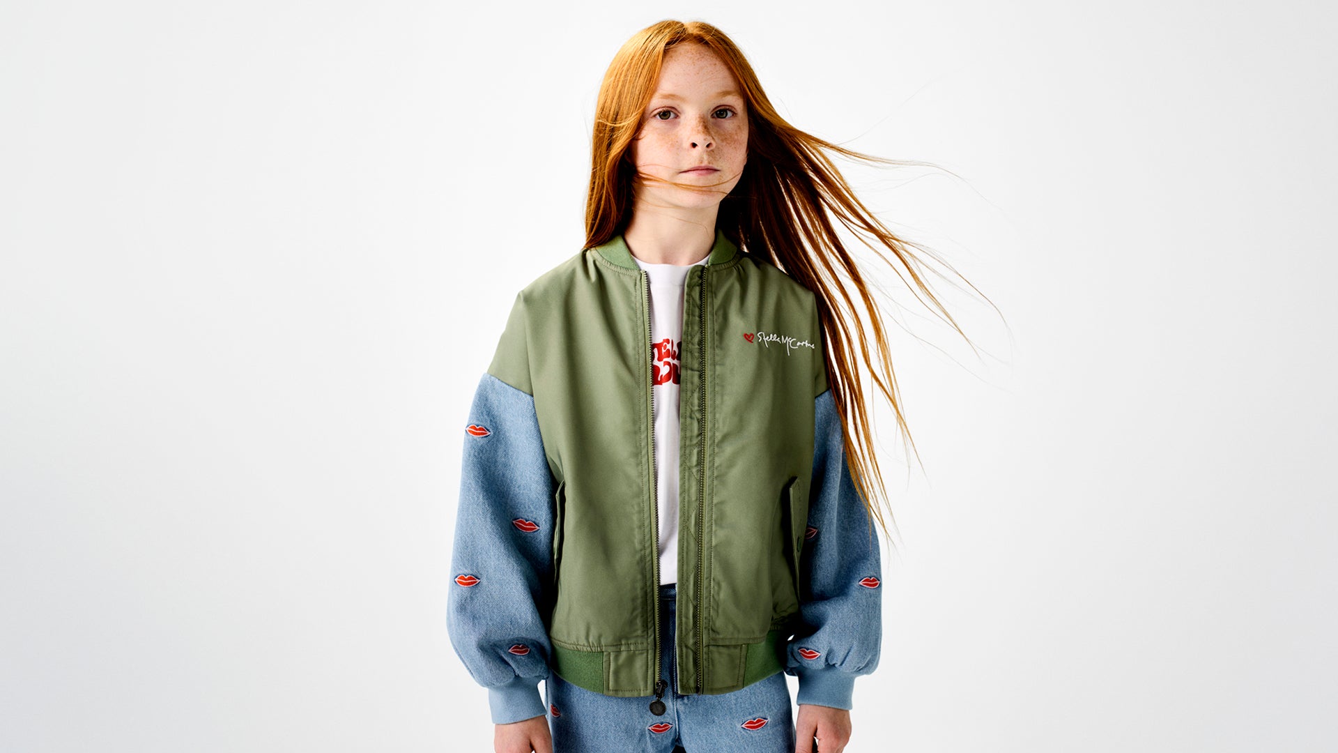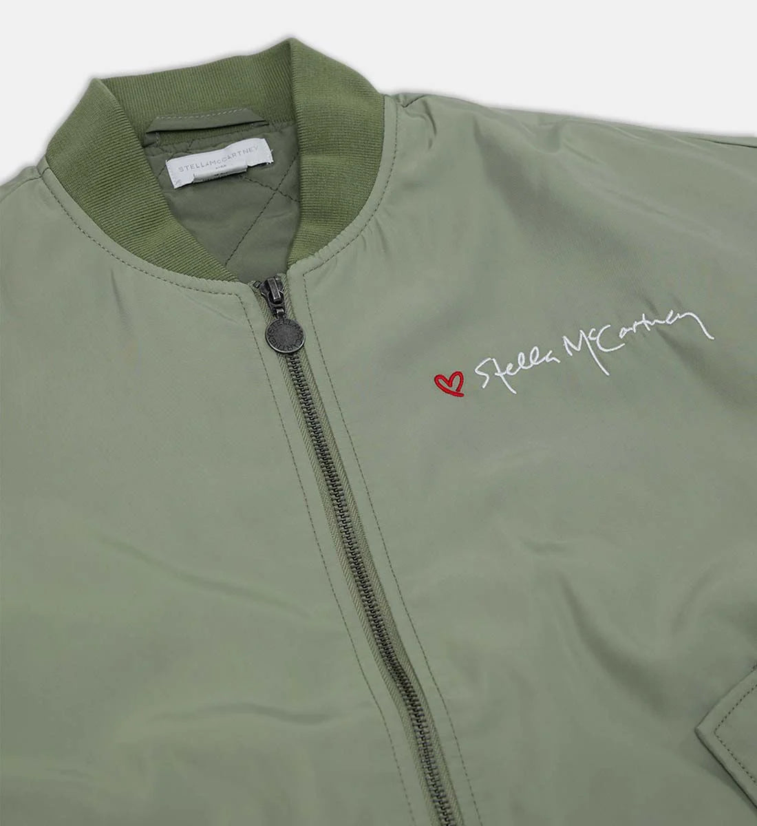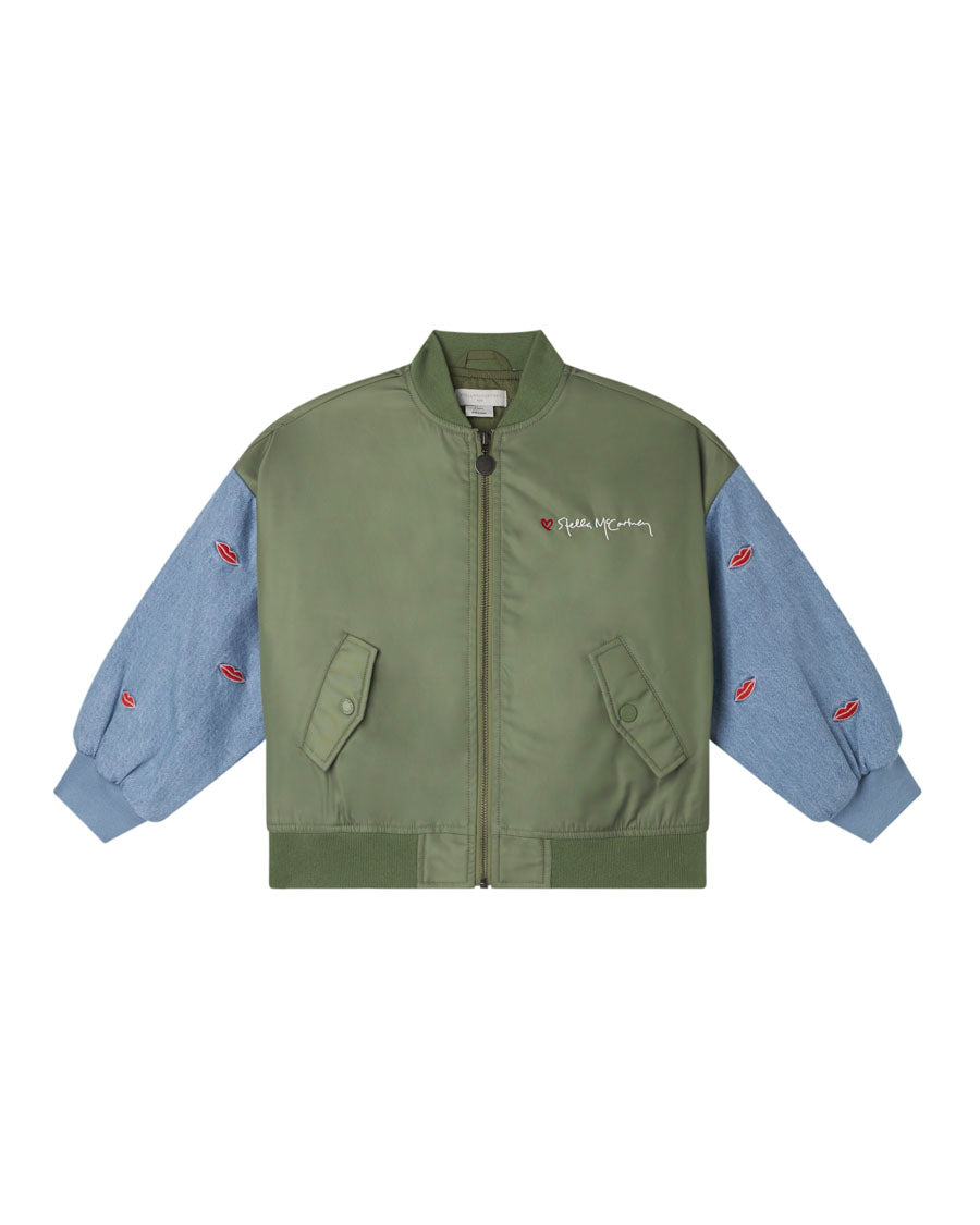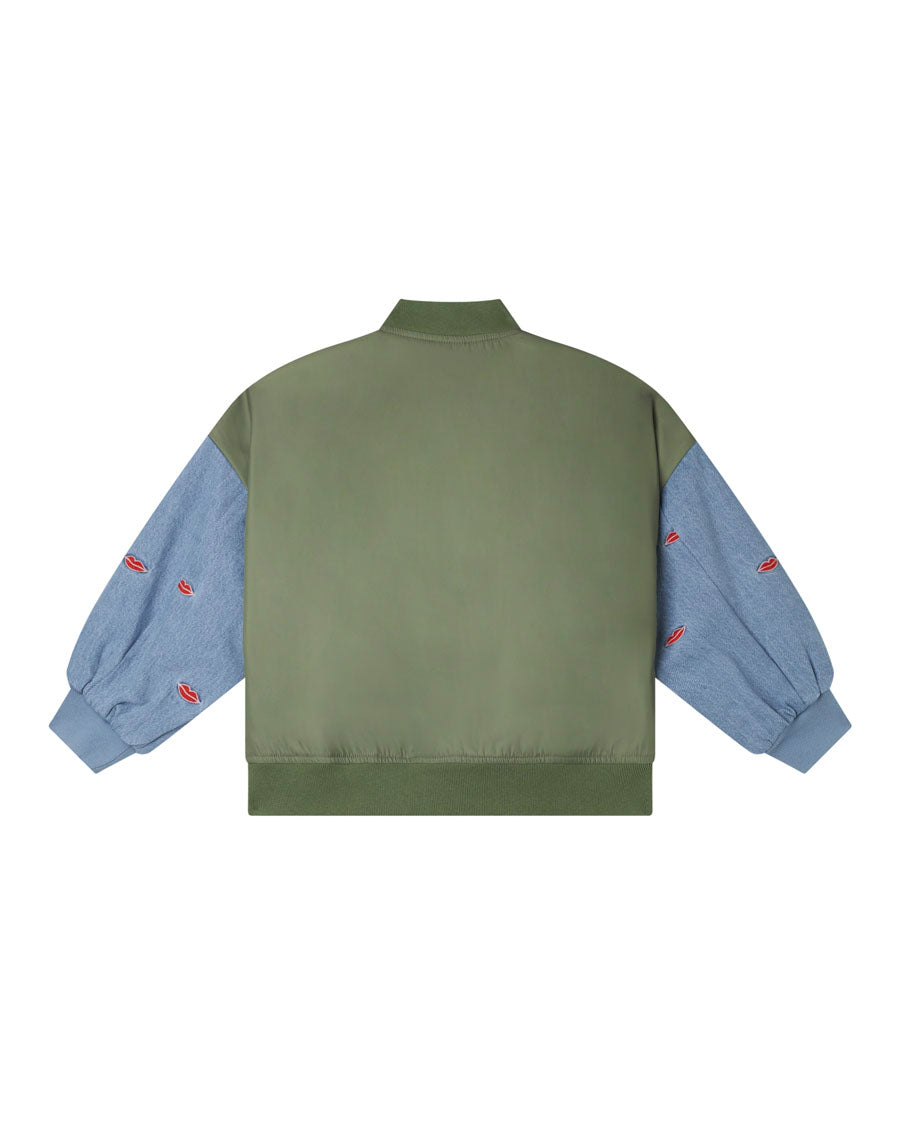 Bomber Jacket w/ Contrast Denim Sleeves - Green/Blue