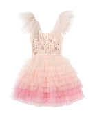 Embrace the magic of myth in the Coral Blush Tulle Dress in Pearl Mix, where every detail tells a story of ancient godesses. Featuring a soft, ruffled neckline reminiscent of Grecian elegance, the bodice is adorned with shimmering beads and sequins that reflect the artistry of ancient legends. The coral blush high-low tutu skirt flows like a soft sunrise, layered in delicate tulle that moves with effortless grace. With adjustable straps and a breathable cotton jersey bodice, this dress is made for young heroines ready to weave their own epic tales.