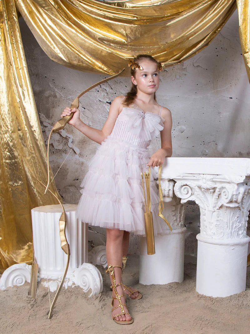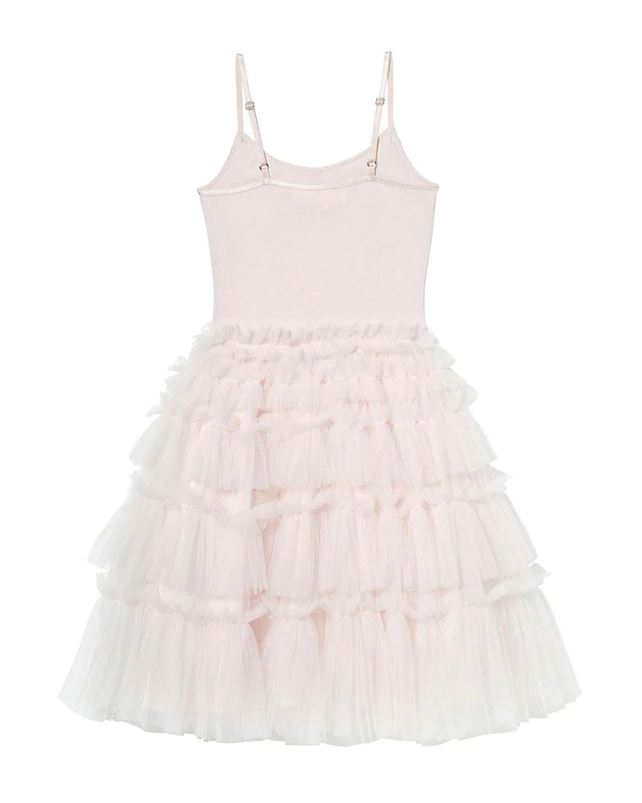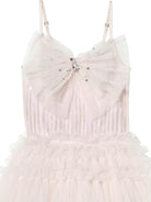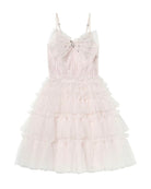 The Symphony Tulle Dress in Tiara features a cascading tiered ruffle skirt that flutters like a dream, paired with a shimmering sequin-embellished bodice that sparkles from every angle. Tied with a soft, oversized tulle bow adding a touch of softness and charm
